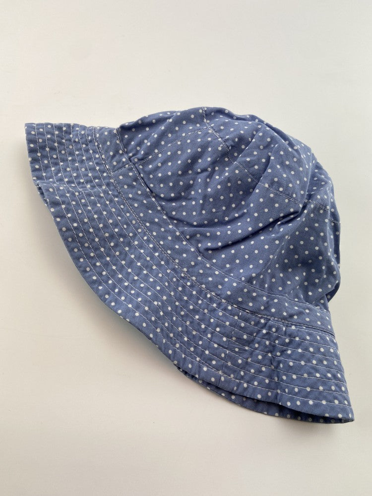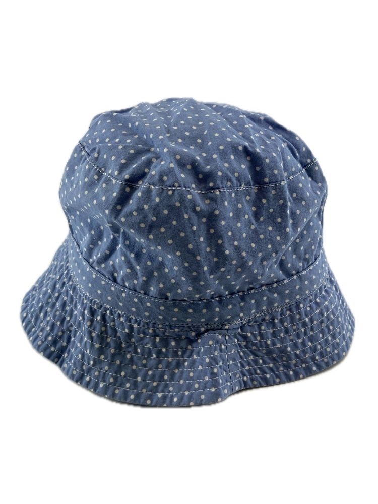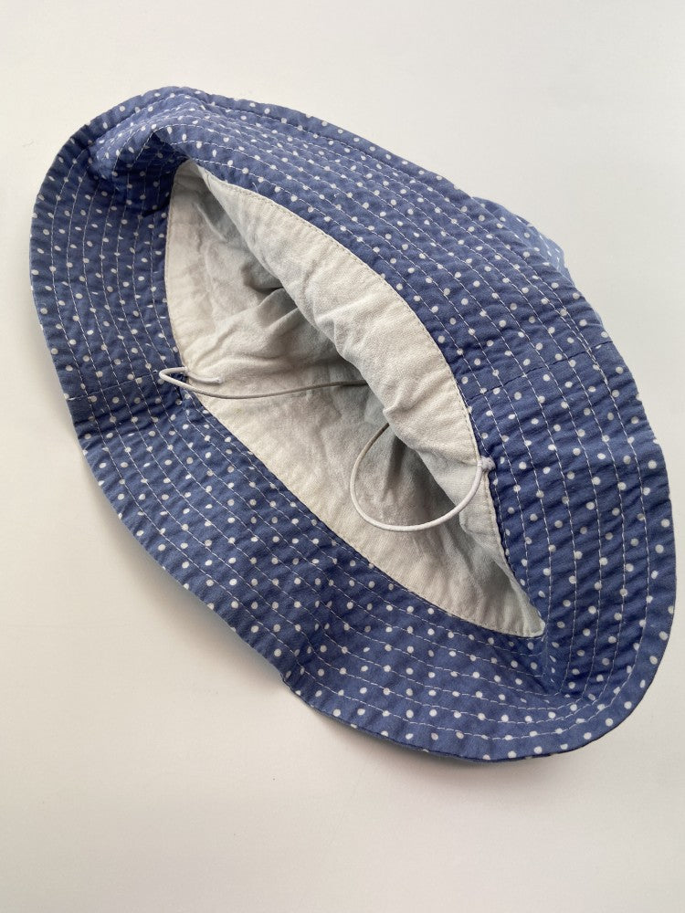 Chapéu com padrão de bolinhas. Forrado e com elástico. Tamanho aproximado.