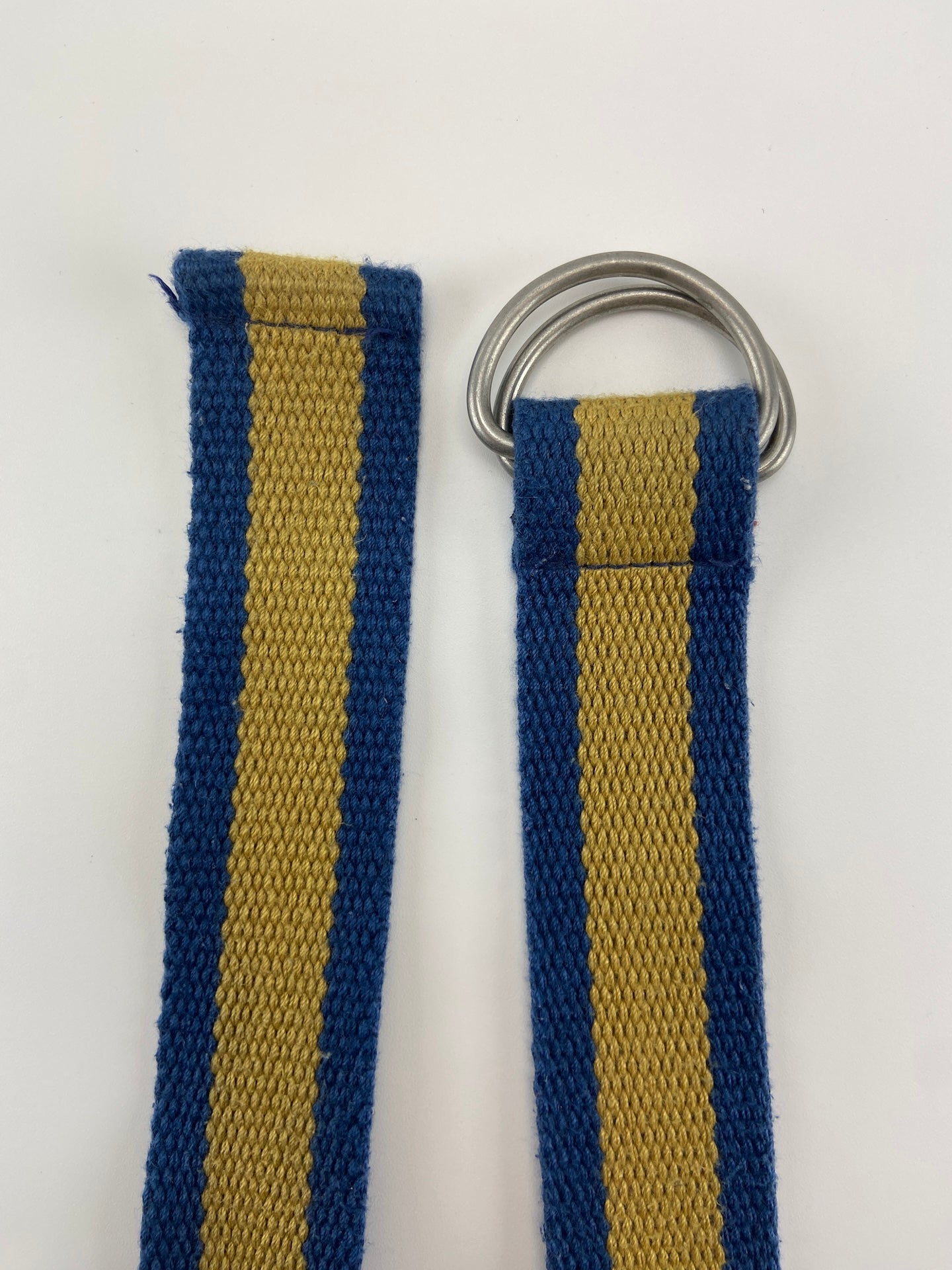 Cinto com fecho de anilhas. Padrão com 3 riscas. É necessário verificar o perímetro da cintura da criança antes de encomendar.