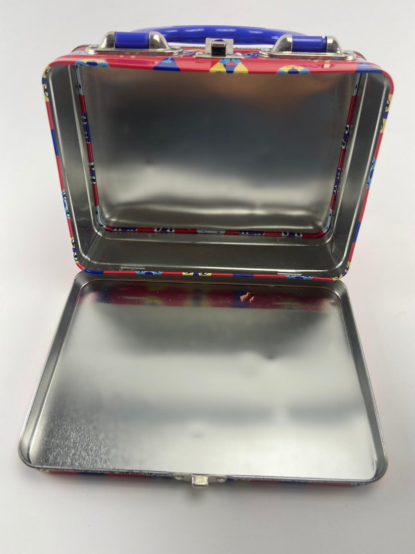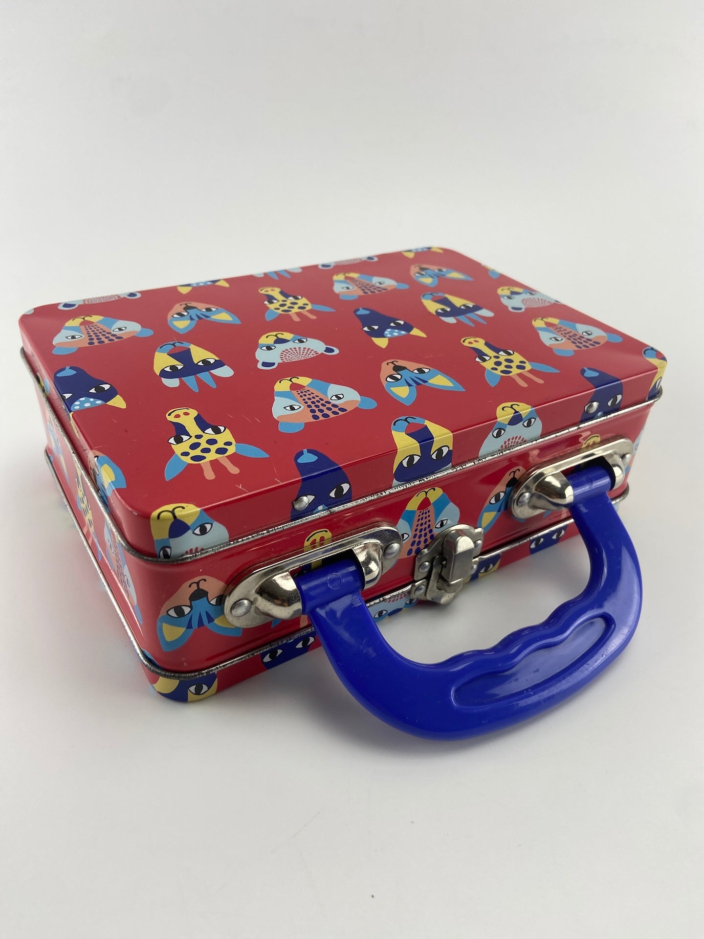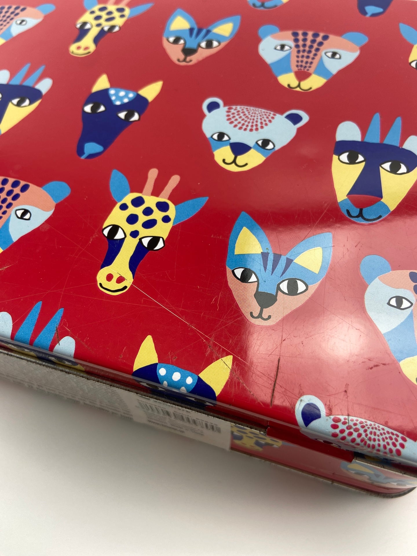 Lancheira de metal com pega de plástico e motivo animais do Zoo.