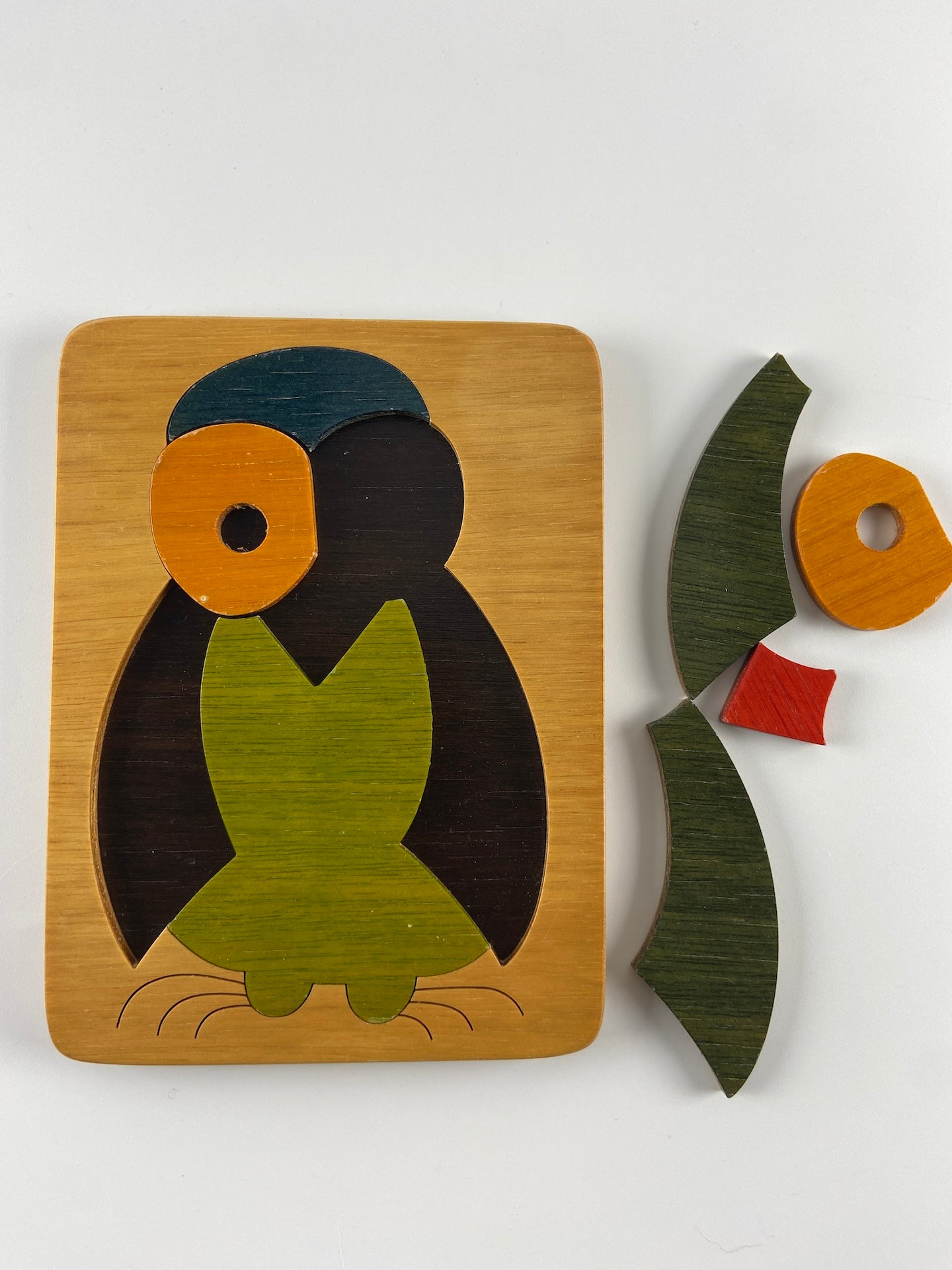 Tabuleiro de madeira para encaixar as peças e obter a figura completa.