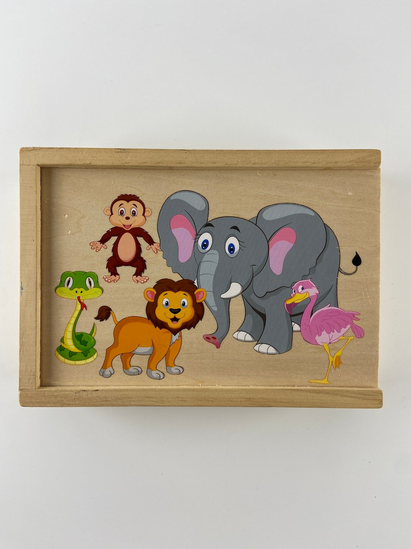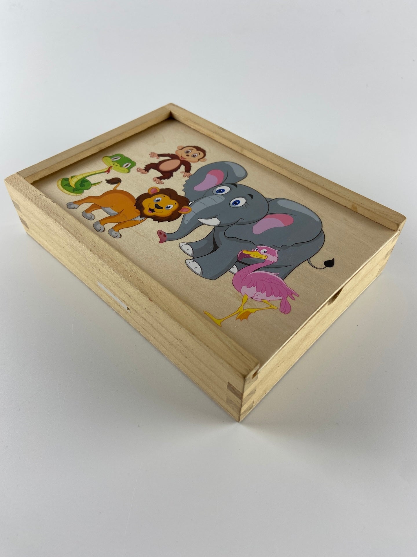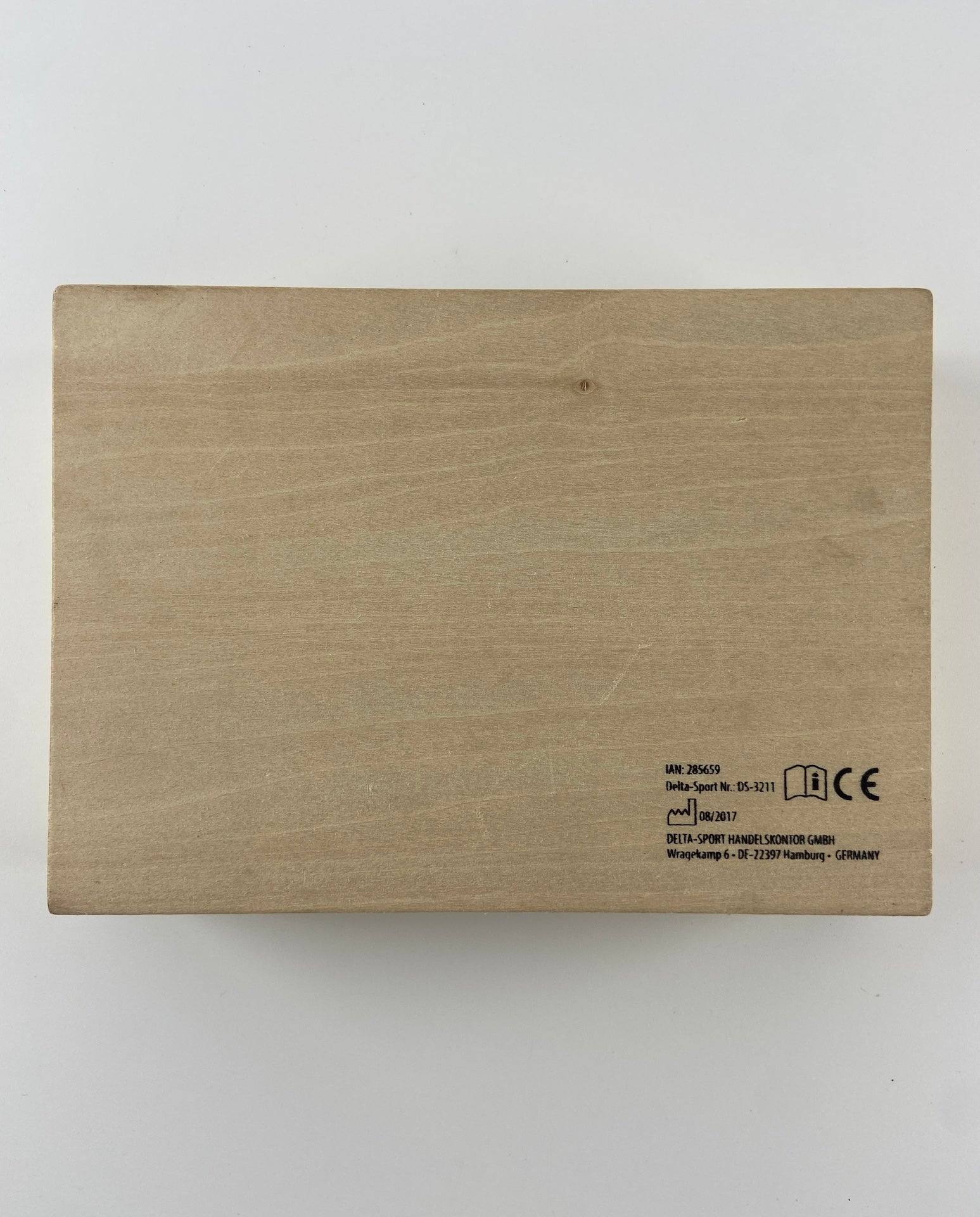 Caixa e peças com algumas marcas de uso. A abertura da caixa ligeiramente empenada.