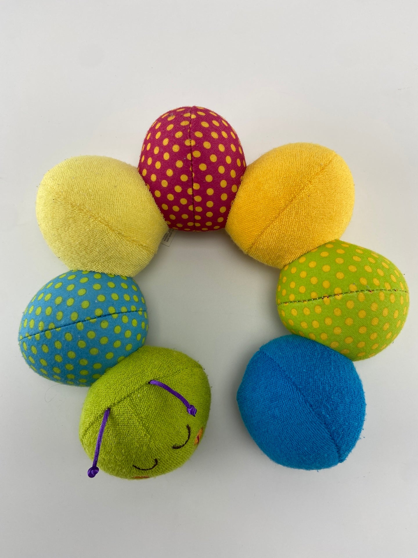 Lagarta de peluche que pode servir de suporte ao pescoço.