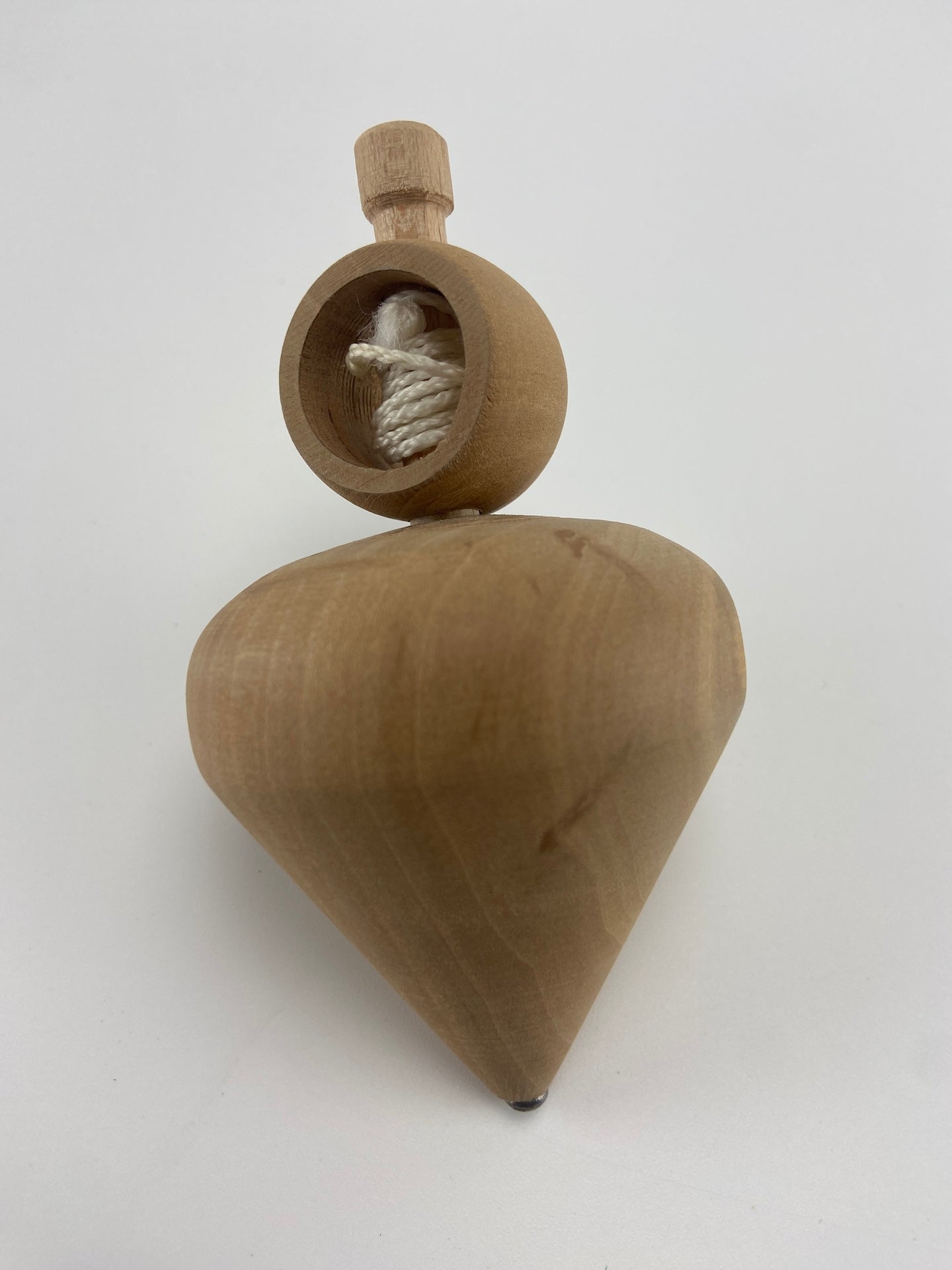 Pião em madeira com sitema de cordel para o pôr a rodar.