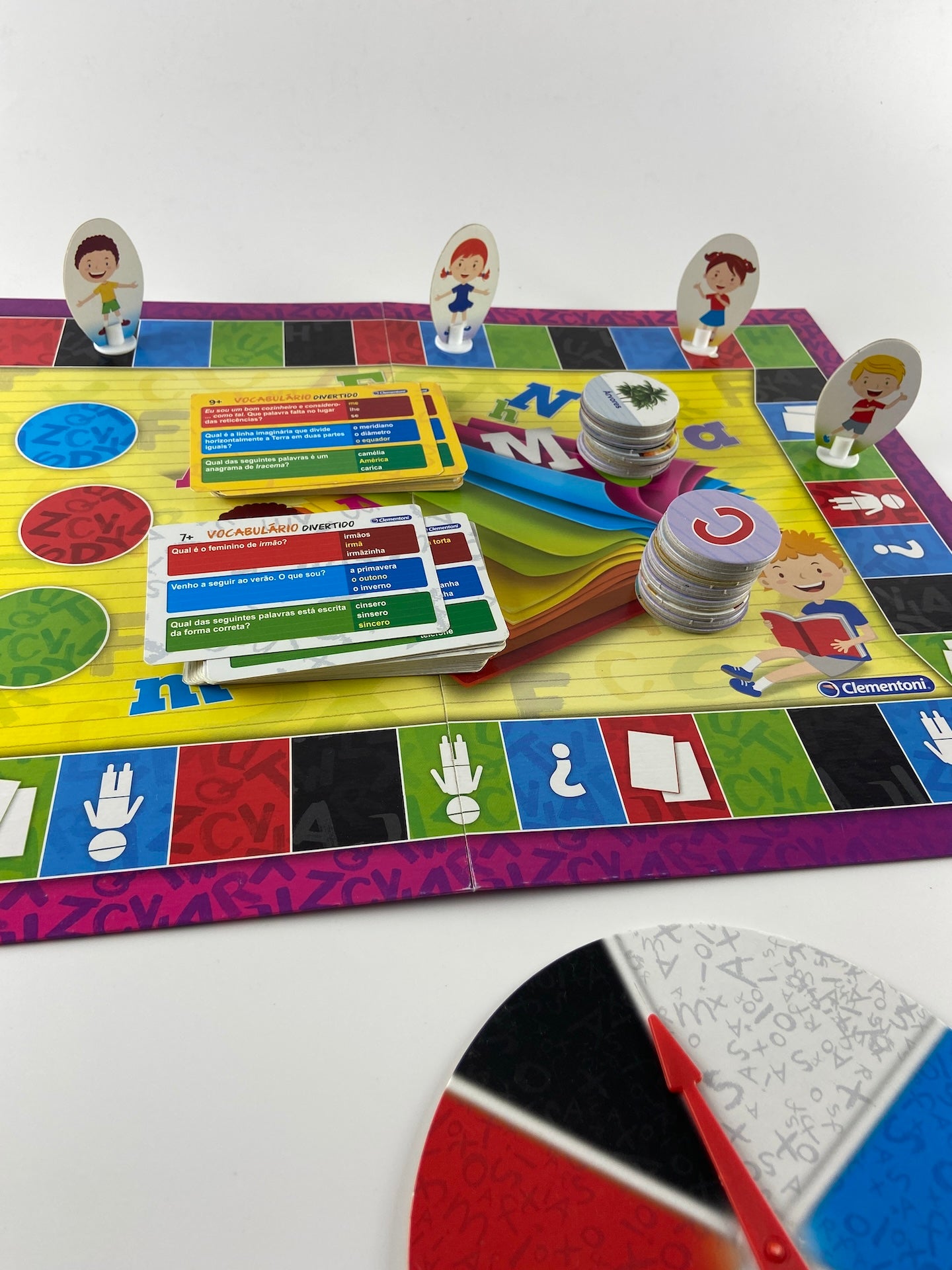 Jogo de perguntas sobre o mundo das palavras. Com diferentes níveis de dificuldade em função da faixa etária da criança.