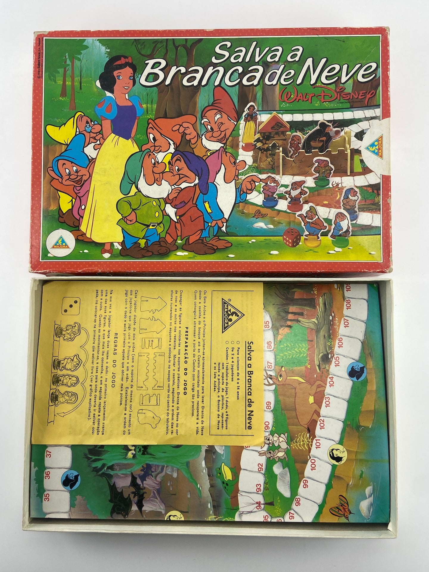 Faltam dois suportes das figuras de cartão e tem peões de plástico para substituir. Jogo antiga com marcas do tempo.