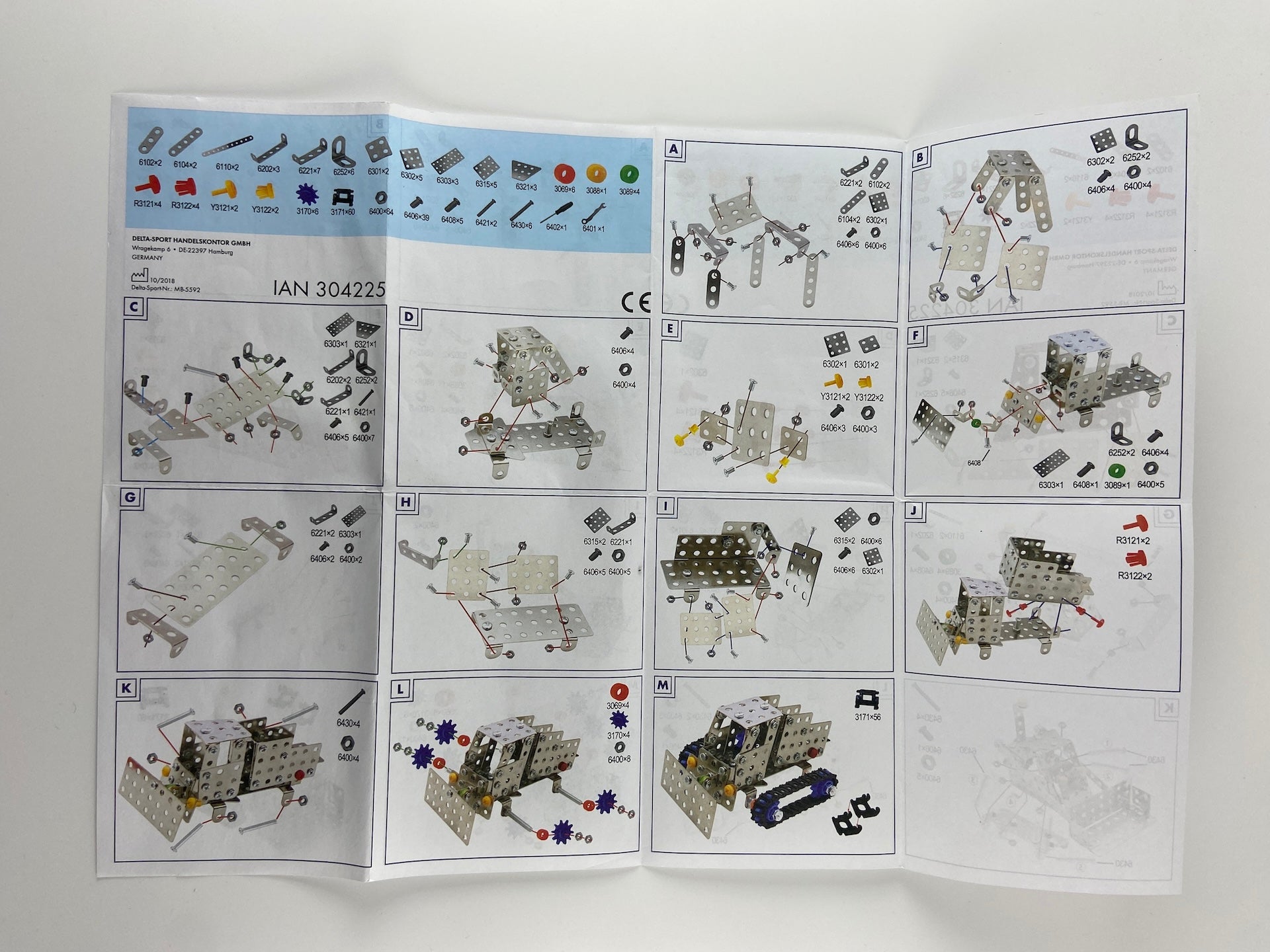 Conjunto de contrução com possibilidade de dois veiculos de lagartas. Peças metálicas tipo mecano. Conjunto completo ainda com caixa e algumas peças ainda nas embalagens originais.