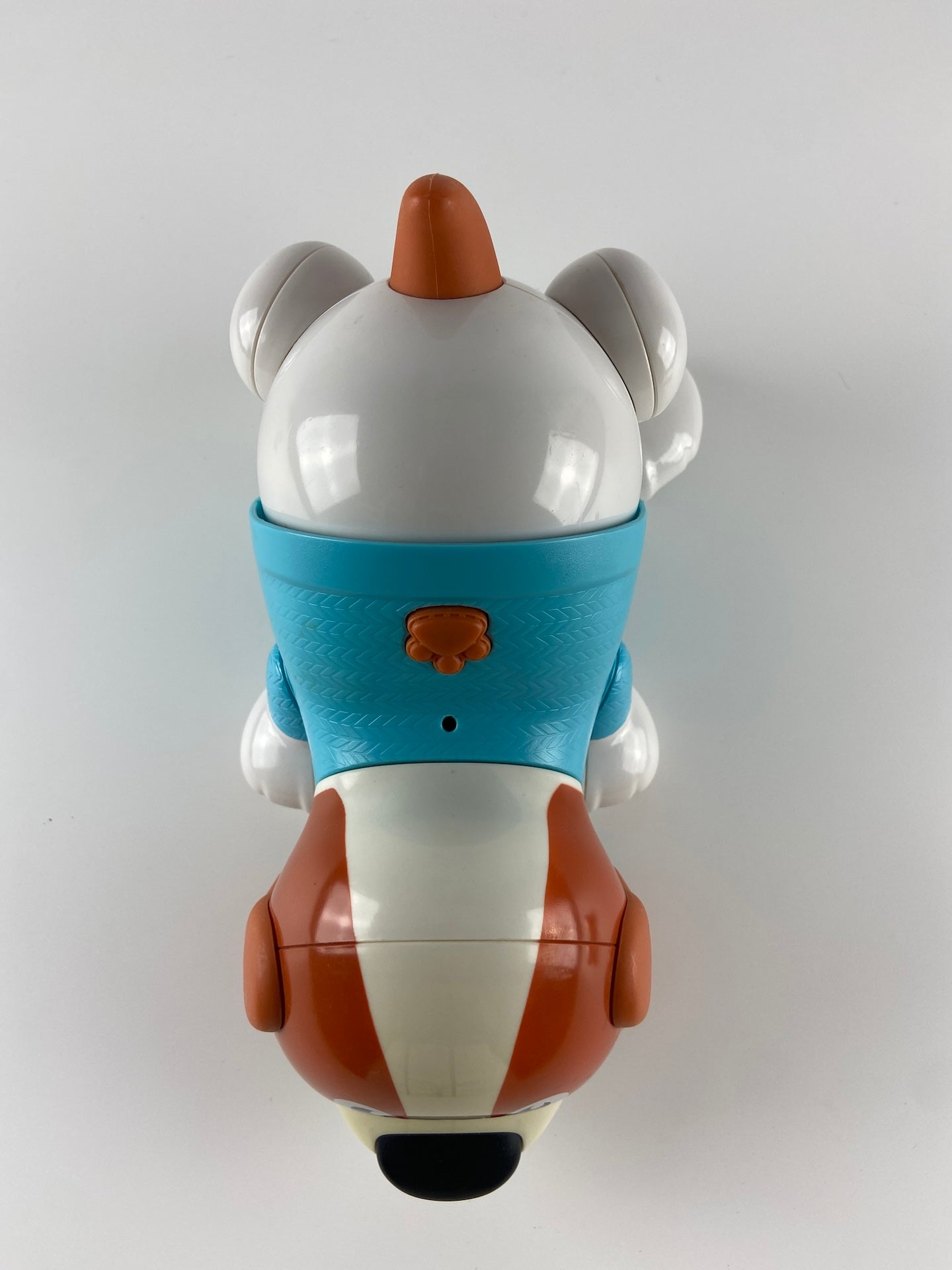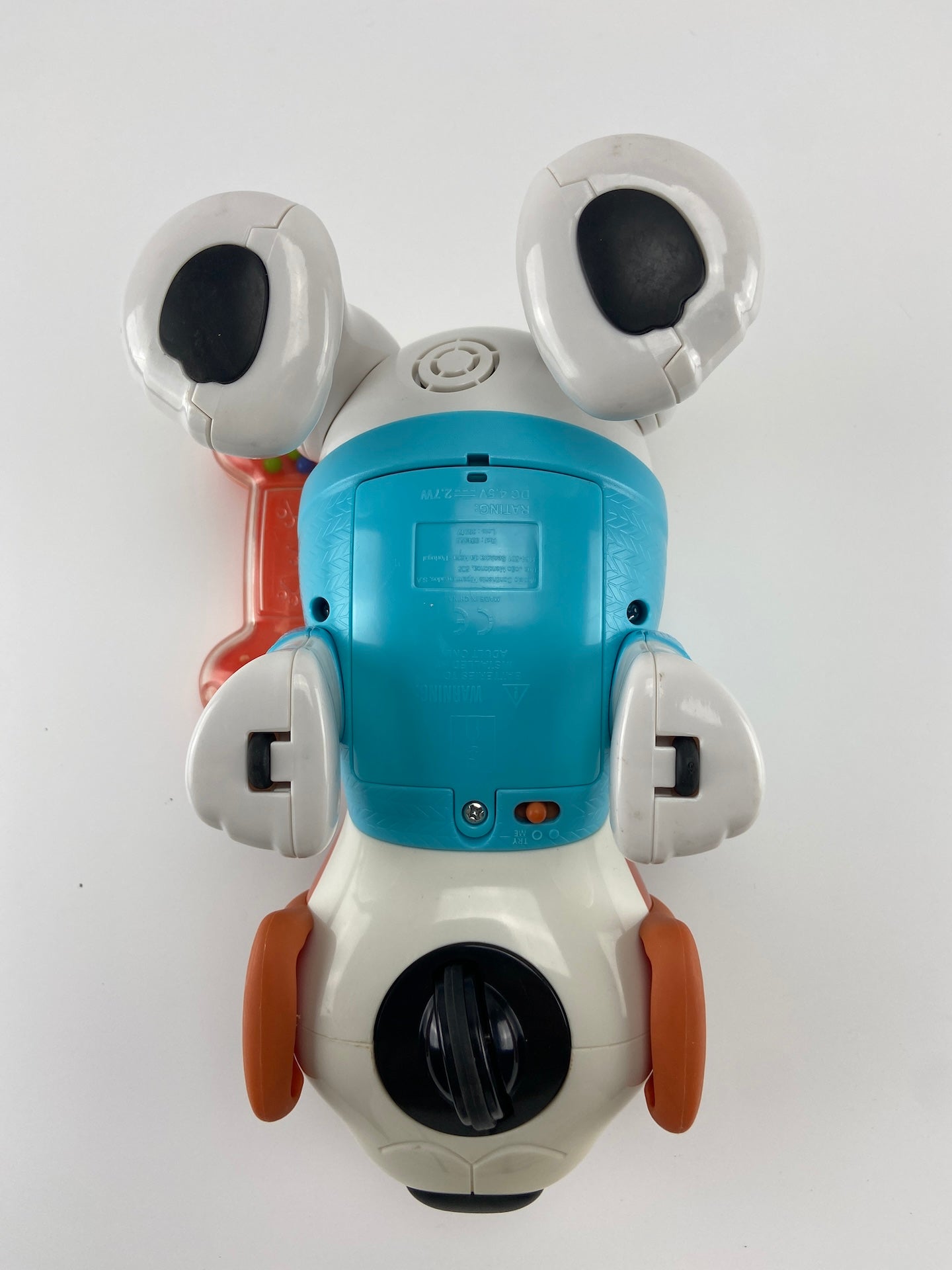 Cão de plástico rígido. Anda e tem som - ladra e fareja. Necessita de pilhas:3xAA-1.5V
