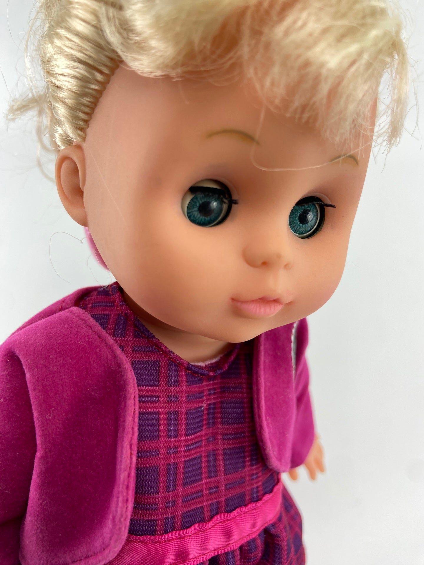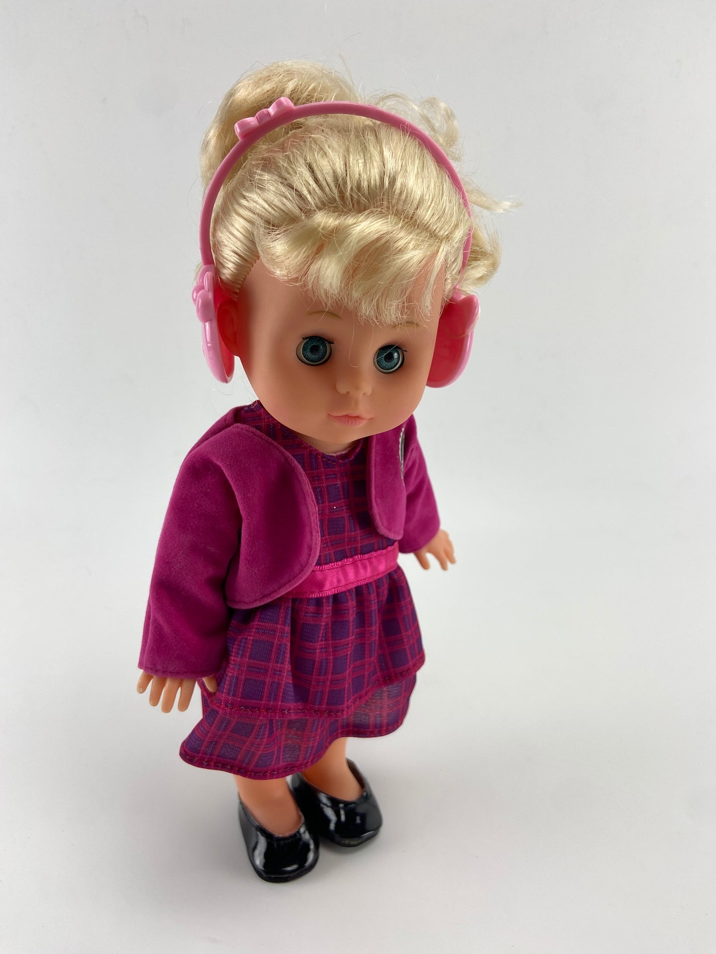 Boneca com ligeiras manchas na cara e cabelo eriçado. Conjunto incompleto. Caschecol com manchas.