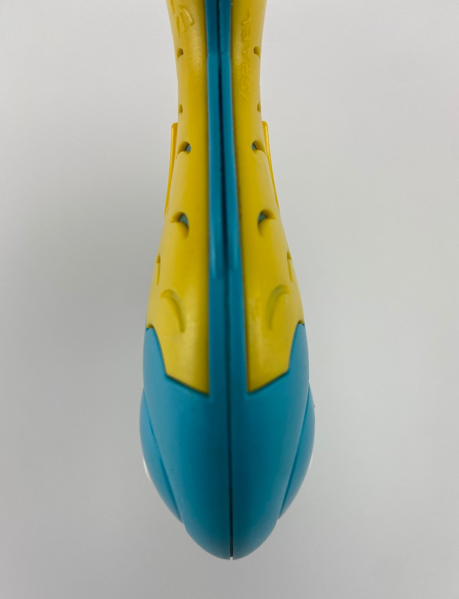 Figura em plástico rígido com elementos de chocalho no interior.