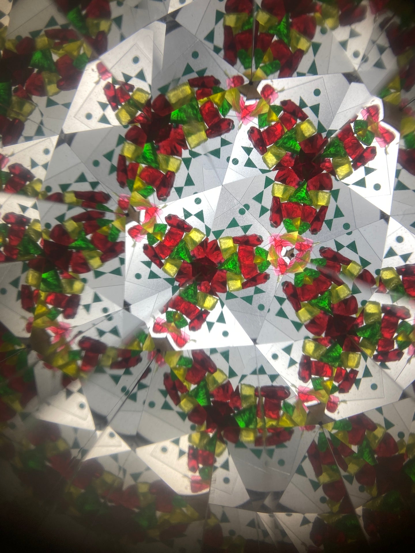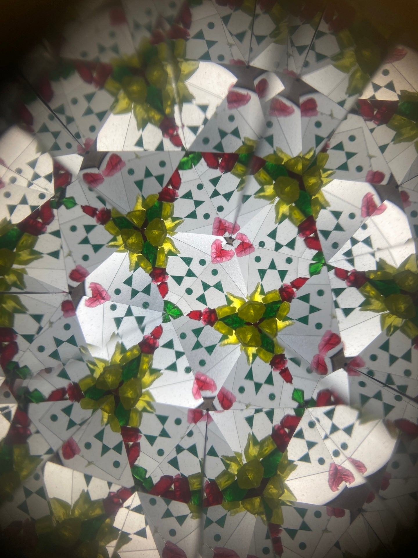 Brinquedo clássico. Espreitando pelo orificio, pode observar padrões geométricos que se vão alterando à medida que vai rodando.