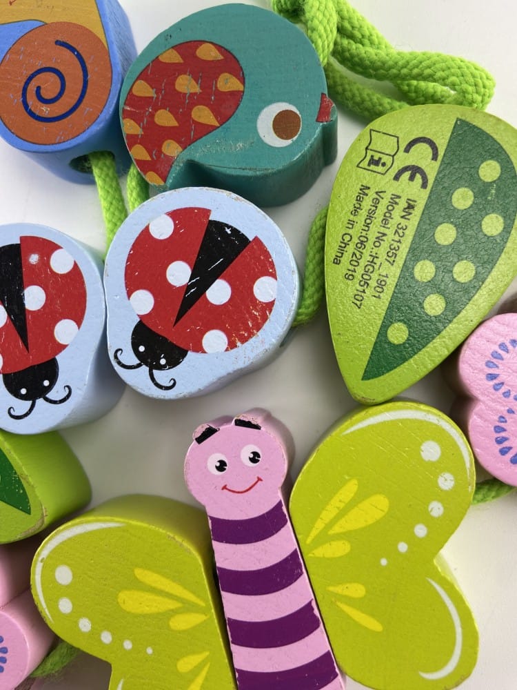 Conjunto de figuras de madeira com orificio para enfiamento, permitindo utilizar como colar.