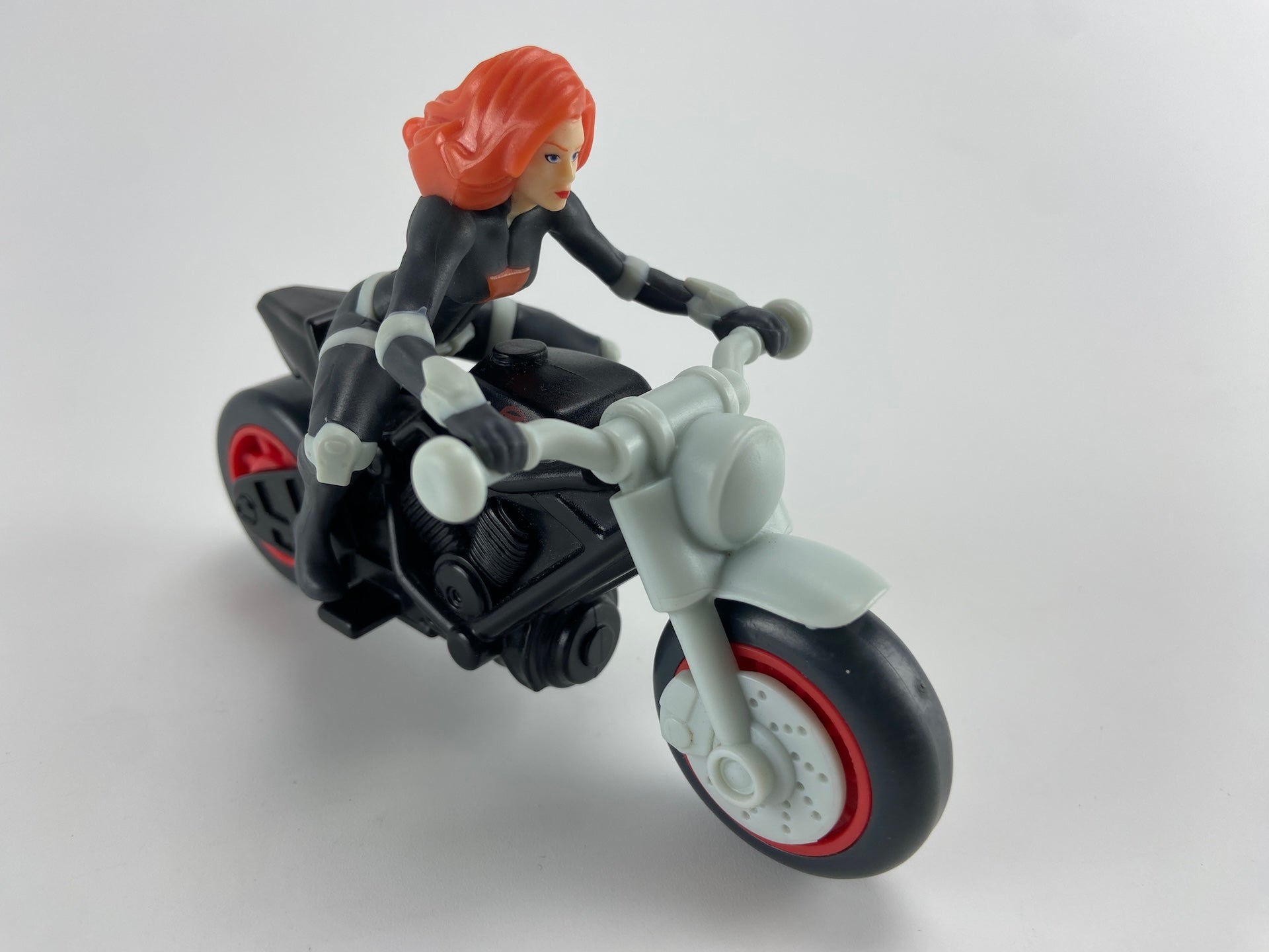 Figura Black Widow com mota. Brinquedo Ovo Kinder.