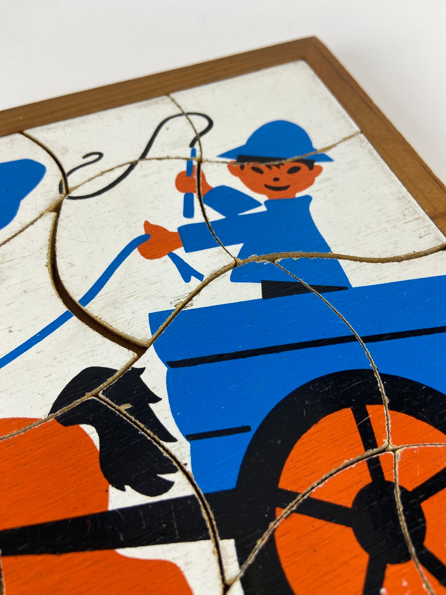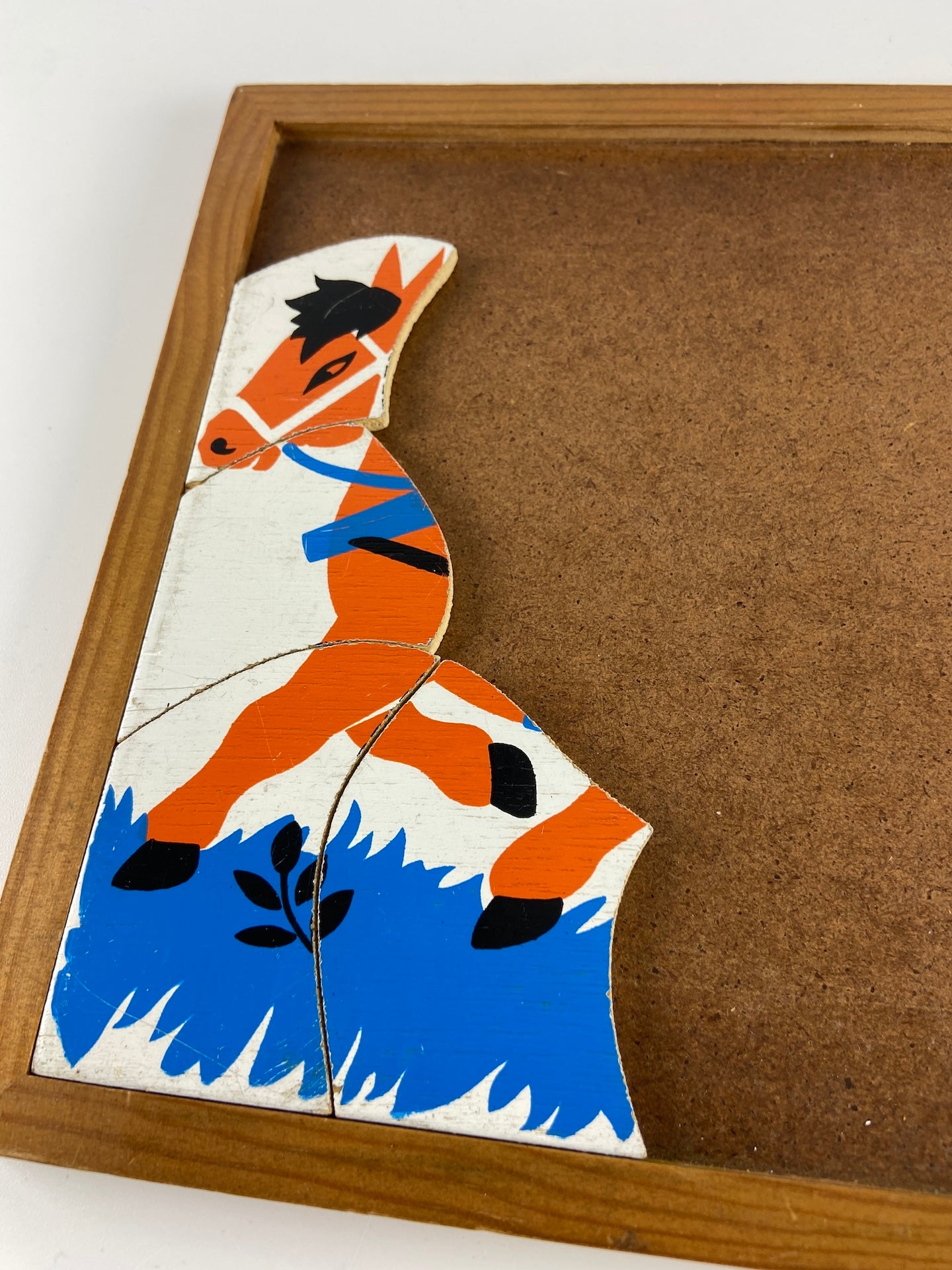 Tabuleiro com peças de madeira para conjugar como um puzzle.