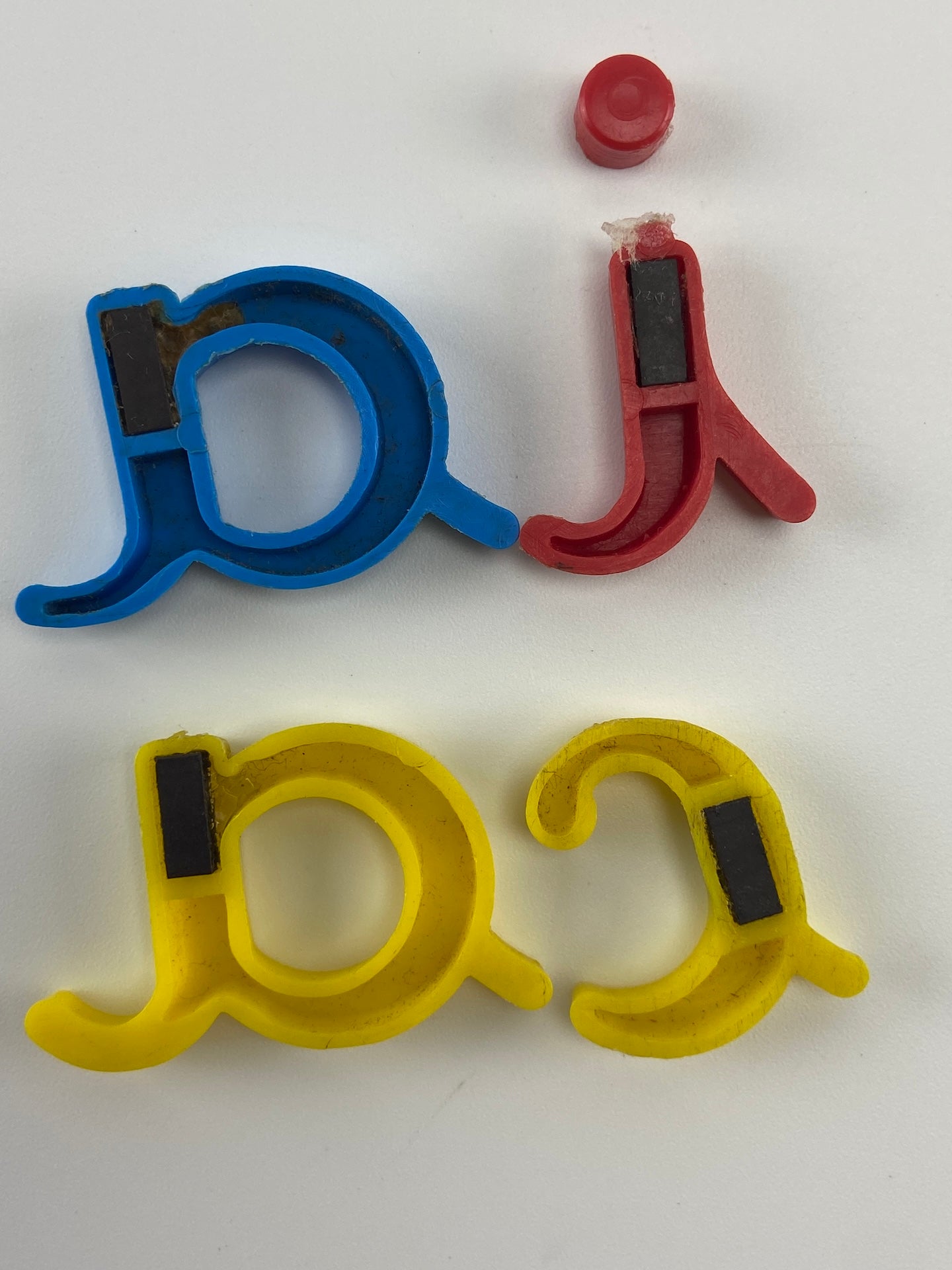 Conjunto de 39 letras em plástico com iman. Letras manuscritas.