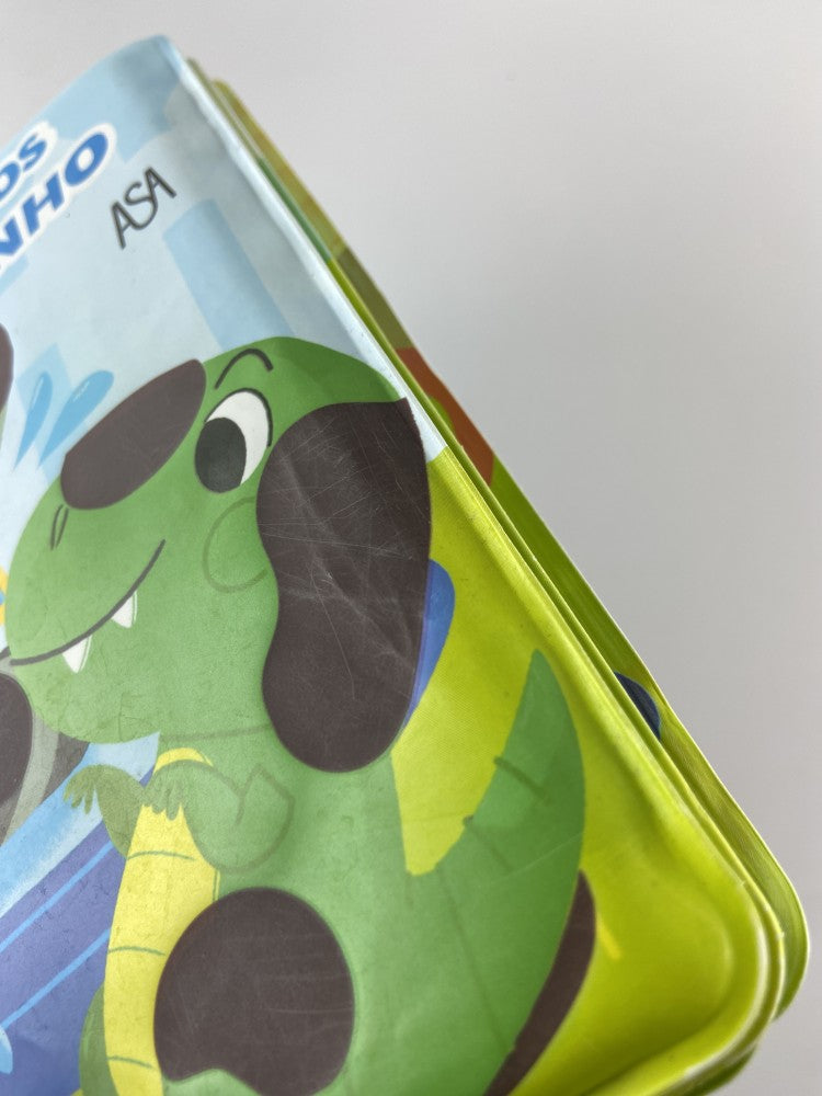 Livro para brincar no banho ilustrações "mágicas" em que as manchas desaparecem em contacto com a água quente.