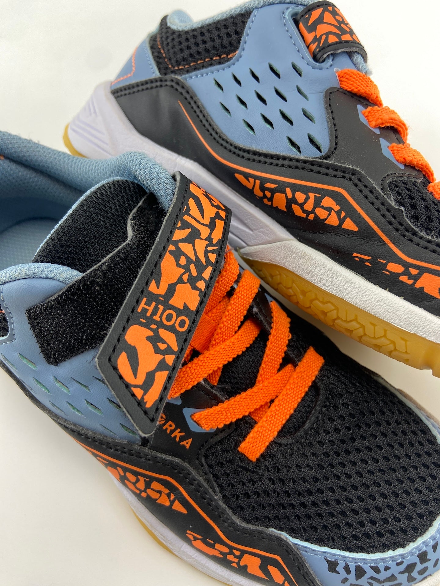 Sapatilhas de andebol de apertar com velcro. Atacadores decorativos.