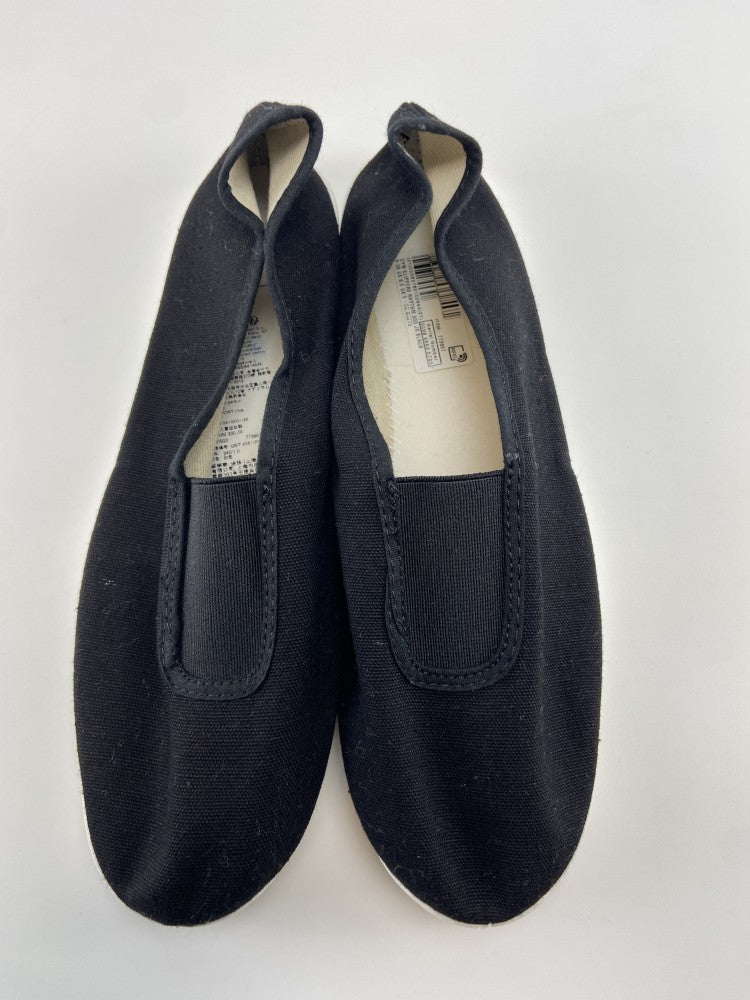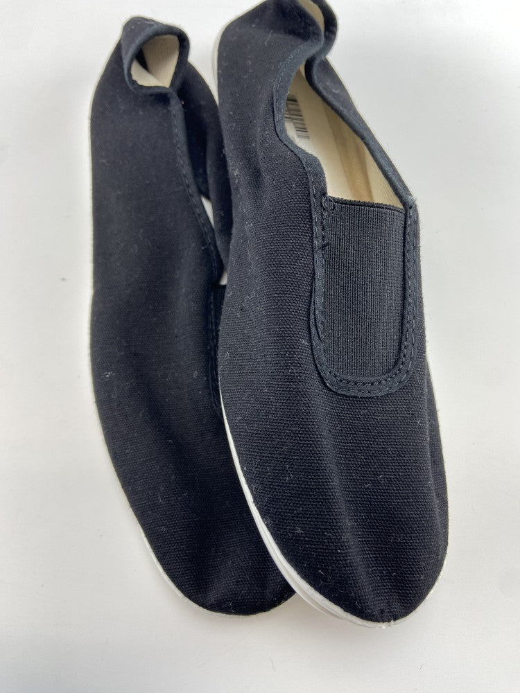 Sapatilhas de lona com sola de borracha.