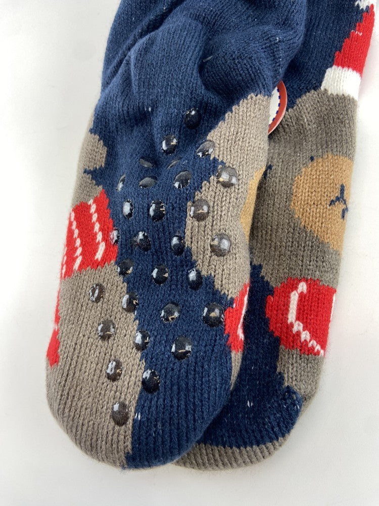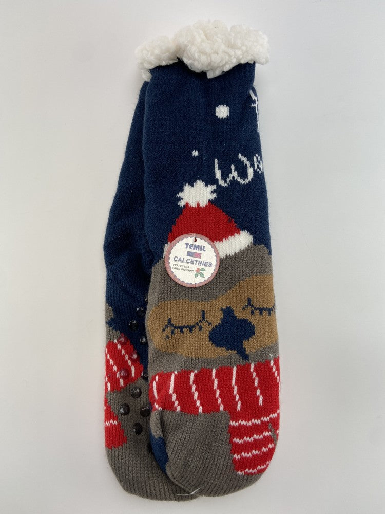Meias antiderrapantes forradas a sherpa com motivos de Natal.