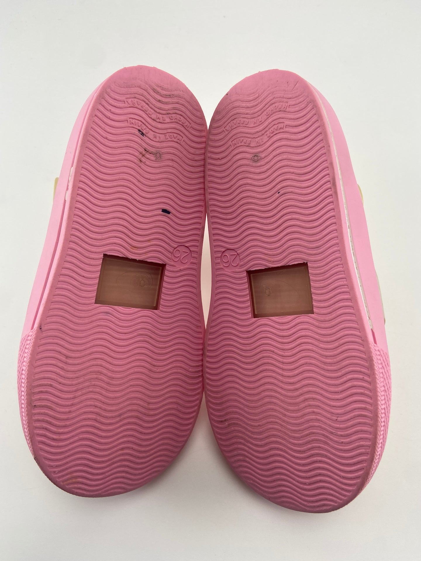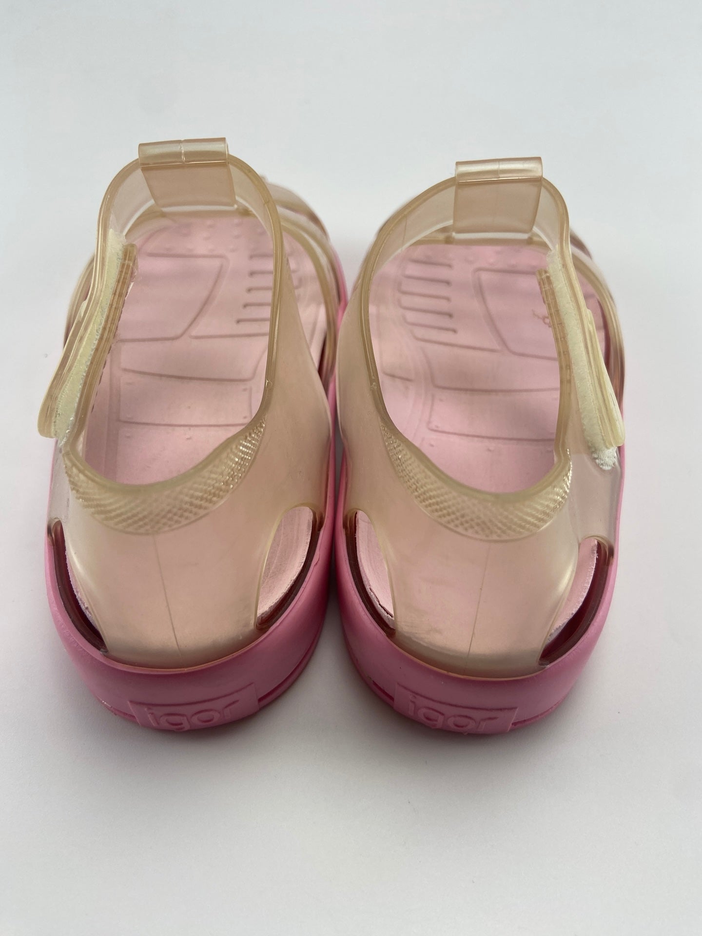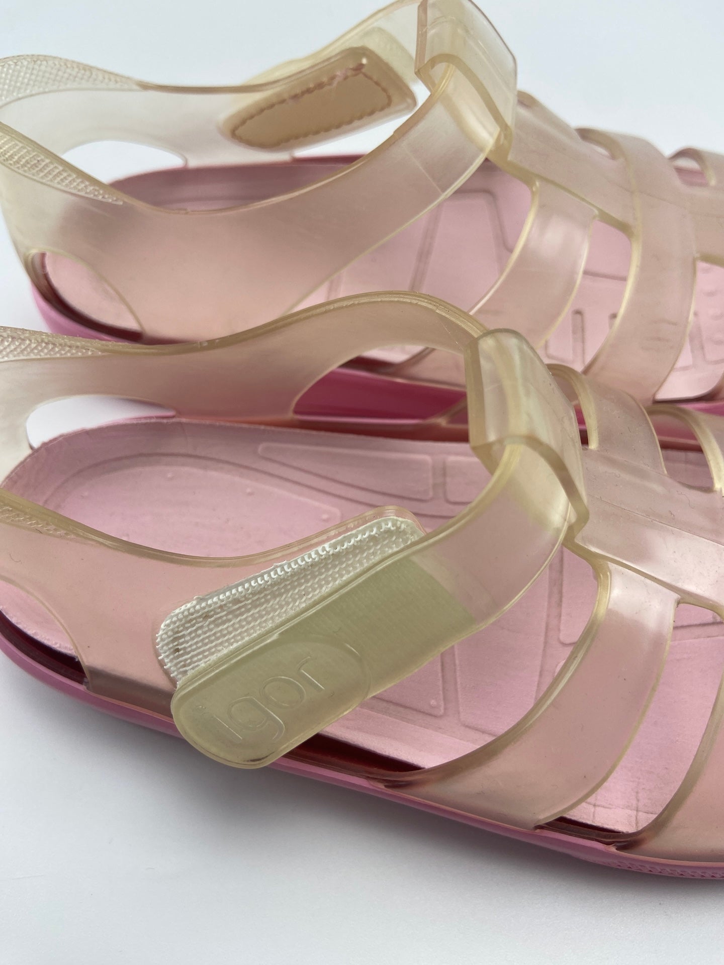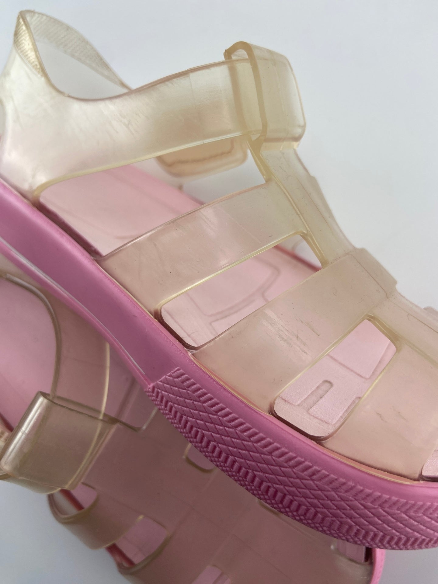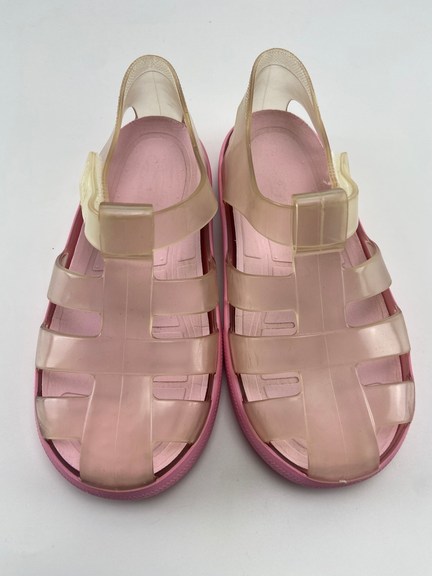 Sandálias de borracha com tiras aderentres. Prendem com velcro.