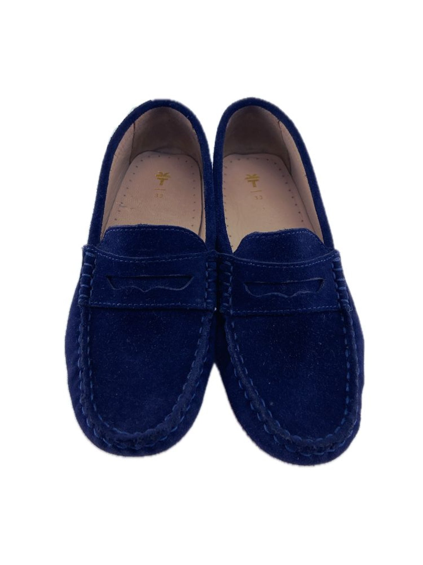 Mocassins clássicos de camurça com sola de borracha. Com caixa original.