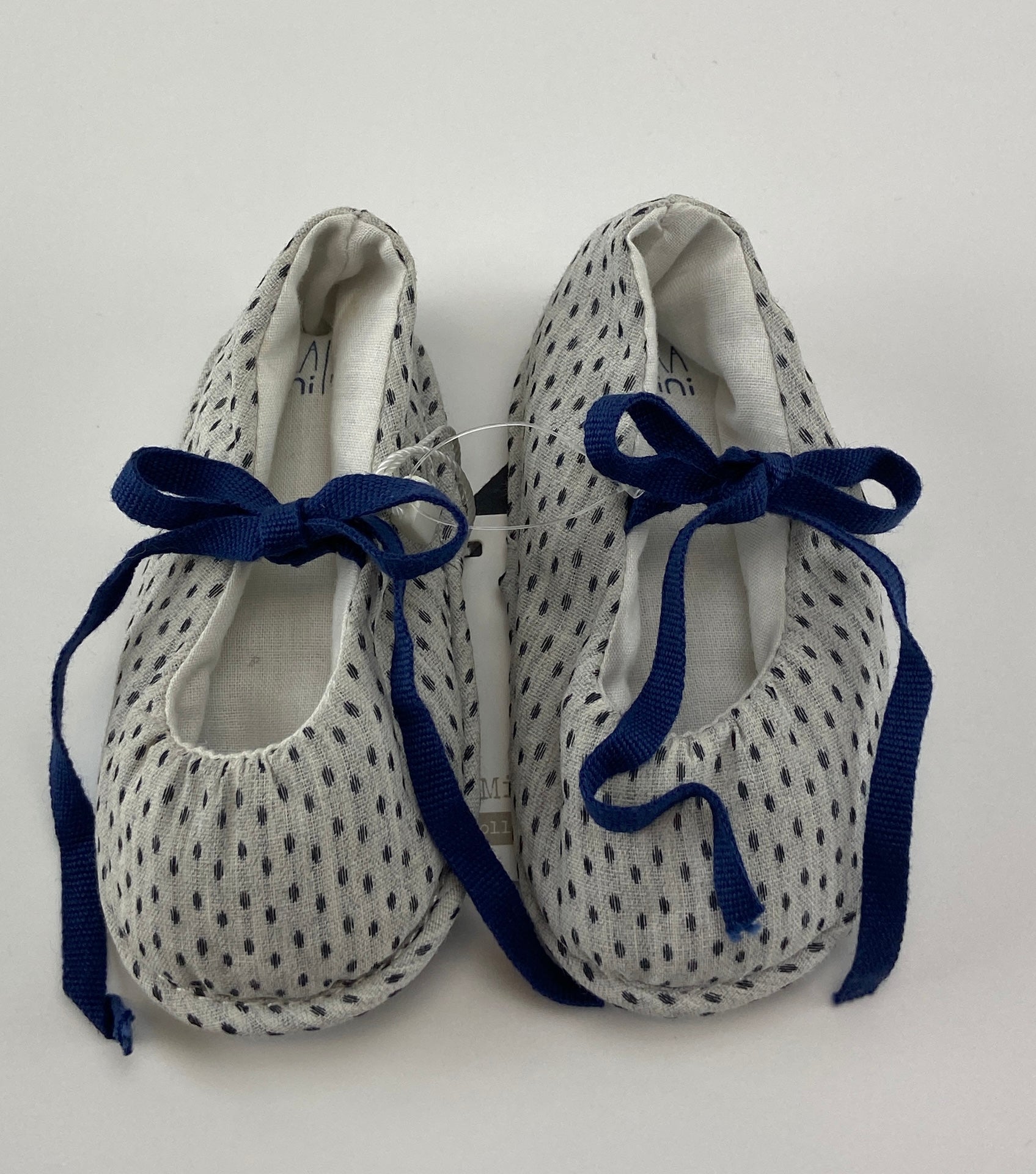 Sabrinas de pano, forradas e almofadadas com atilhos. Sola em pano.