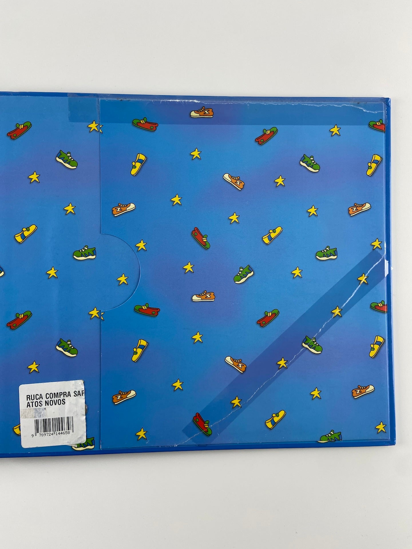 No interior da contracapa tem uma bolsa de papel sem conteudo, colada com fita cola.
