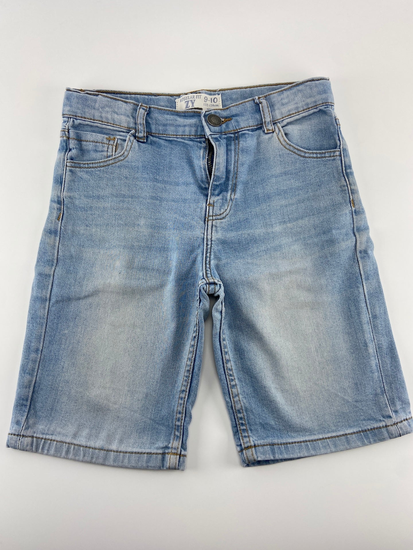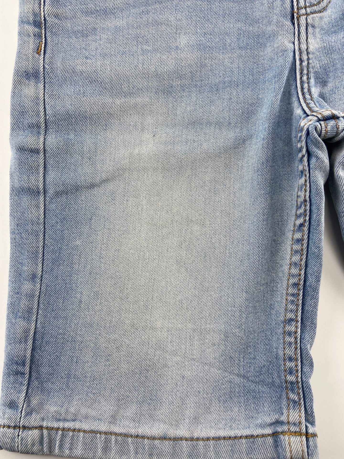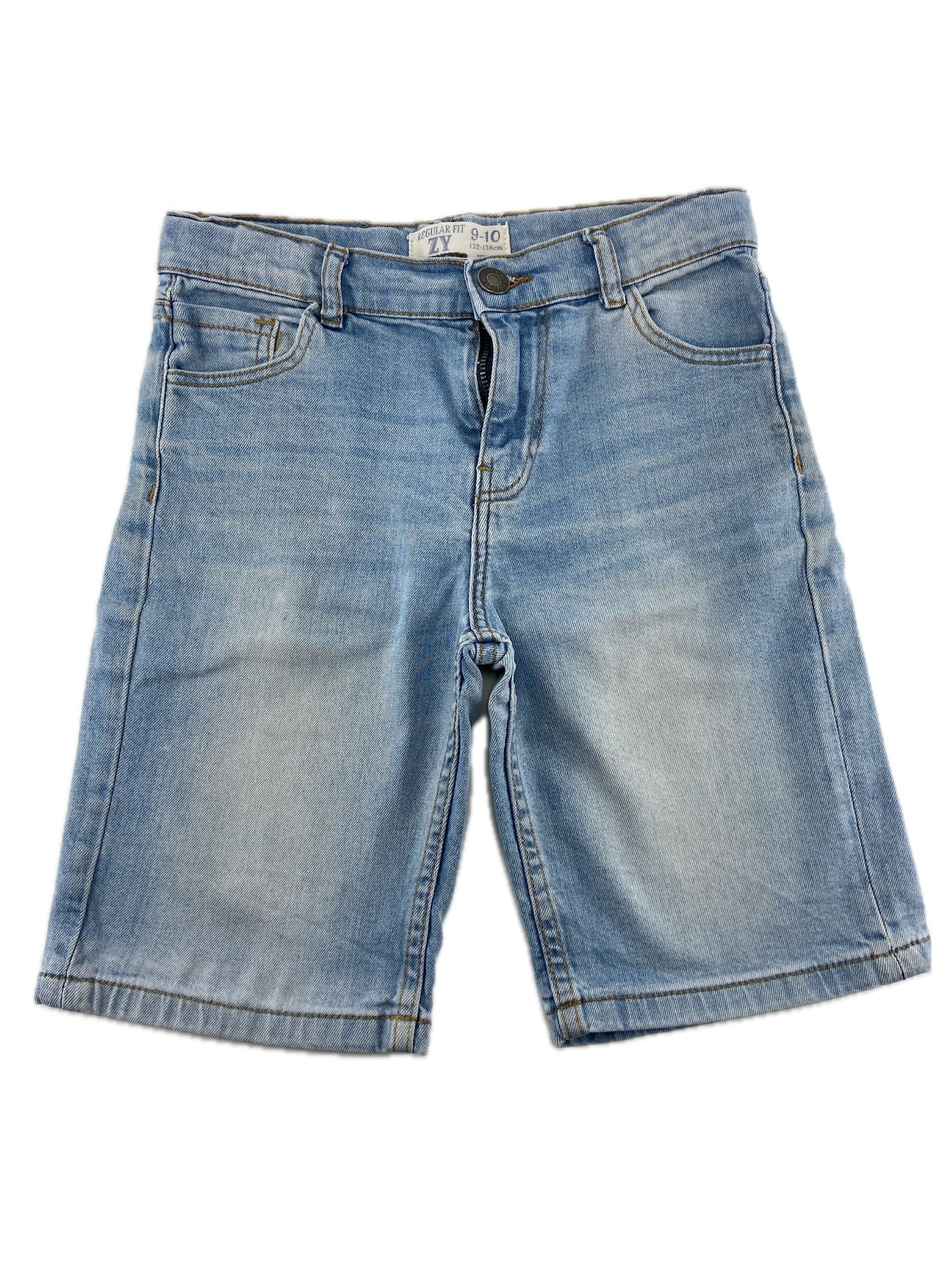 Calções de ganga leve com 5 bolsos e elástico ajustável na cintura.