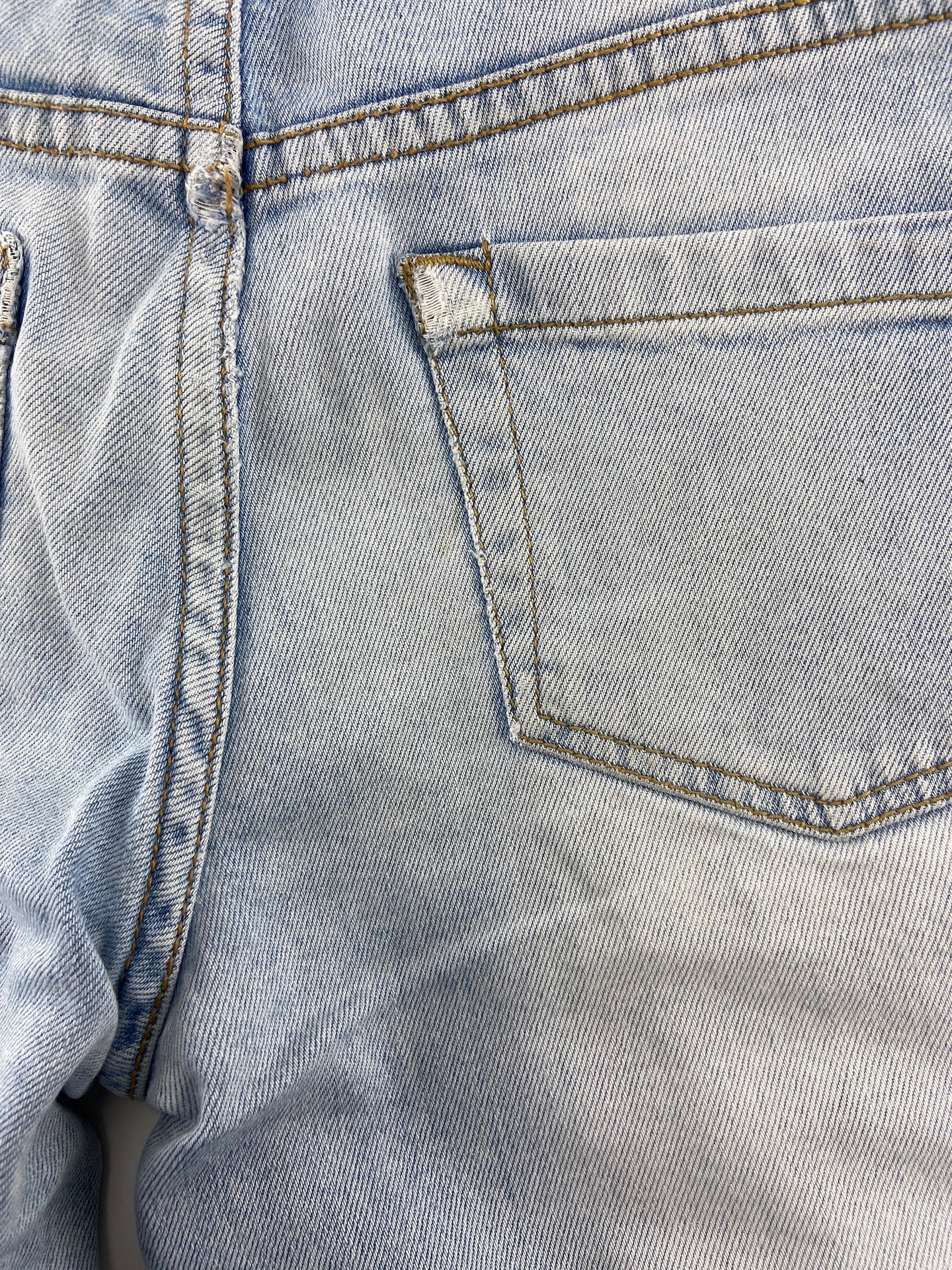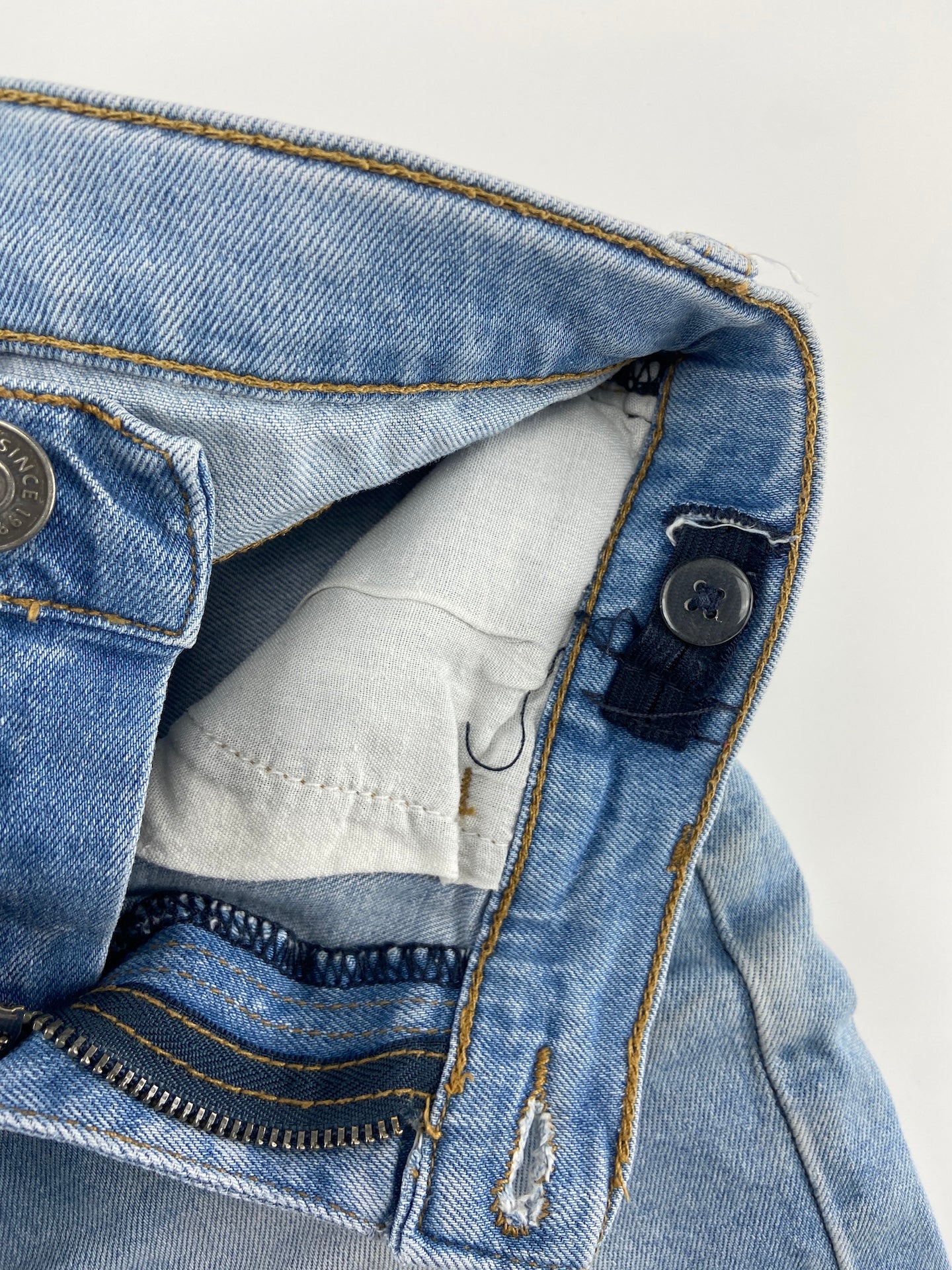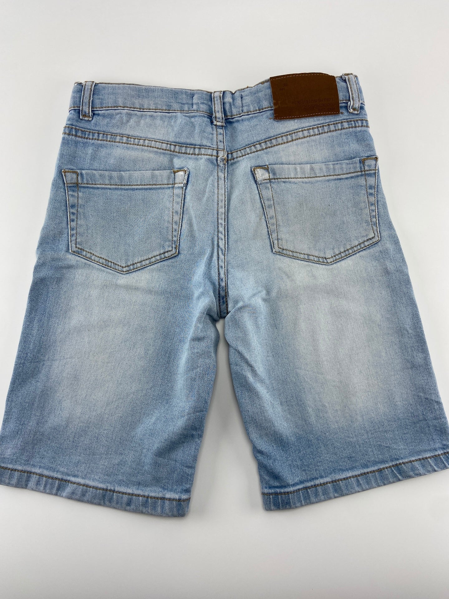 Calções de ganga leve com 5 bolsos e elástico ajustável na cintura.