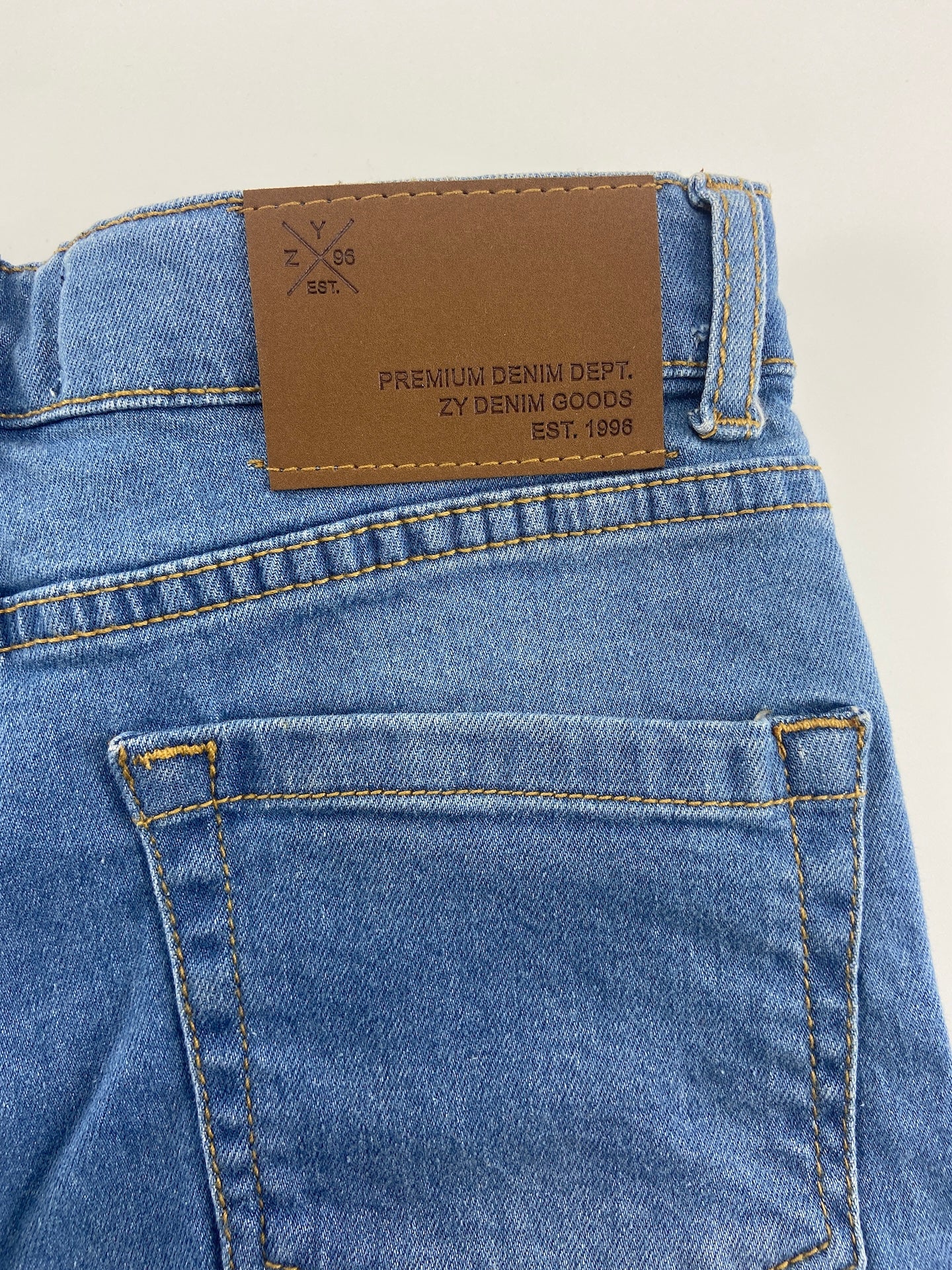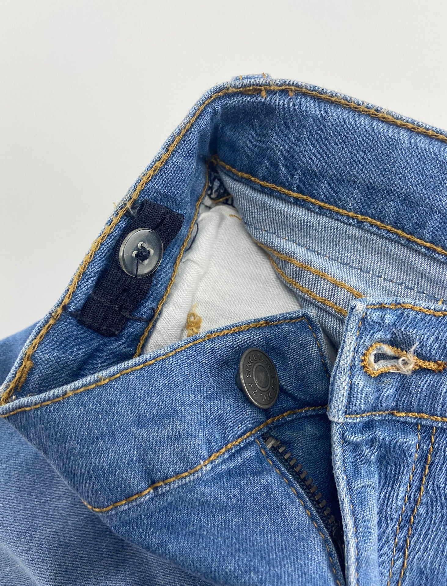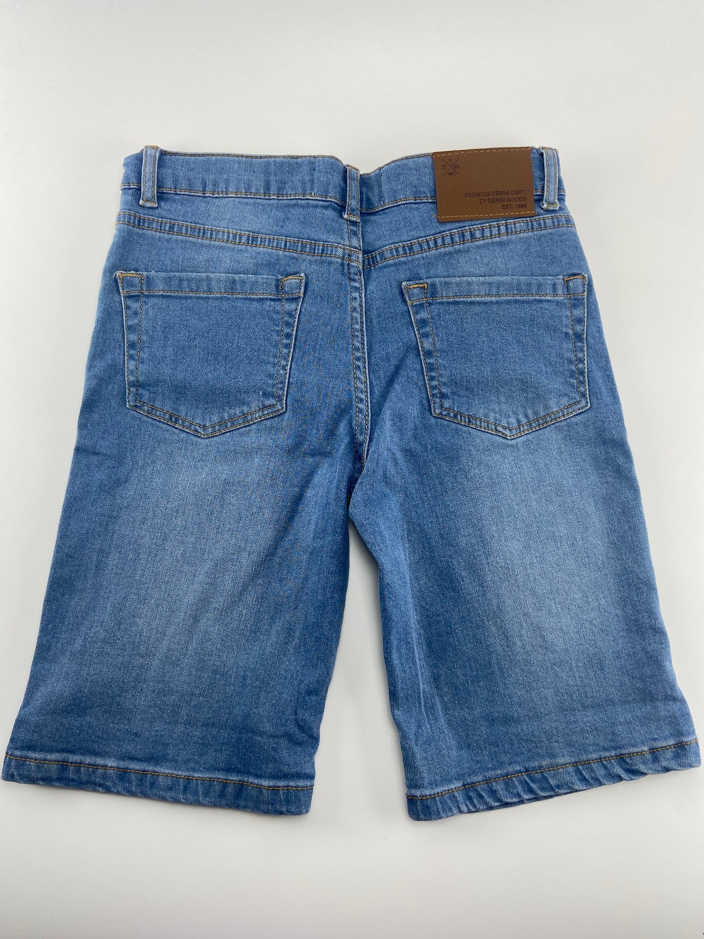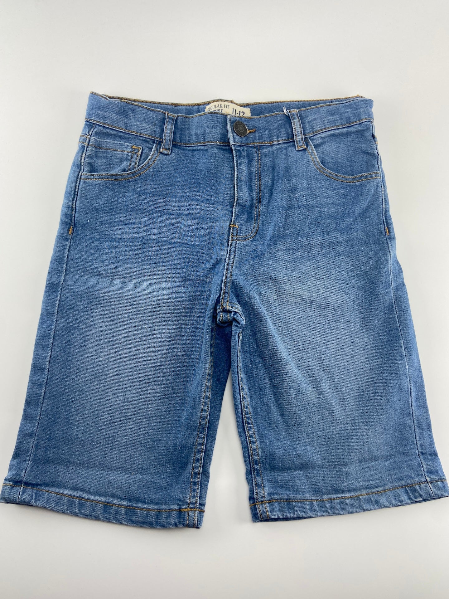 Calções de ganga leve com 5 bolsos e elástico ajustável na cintura.