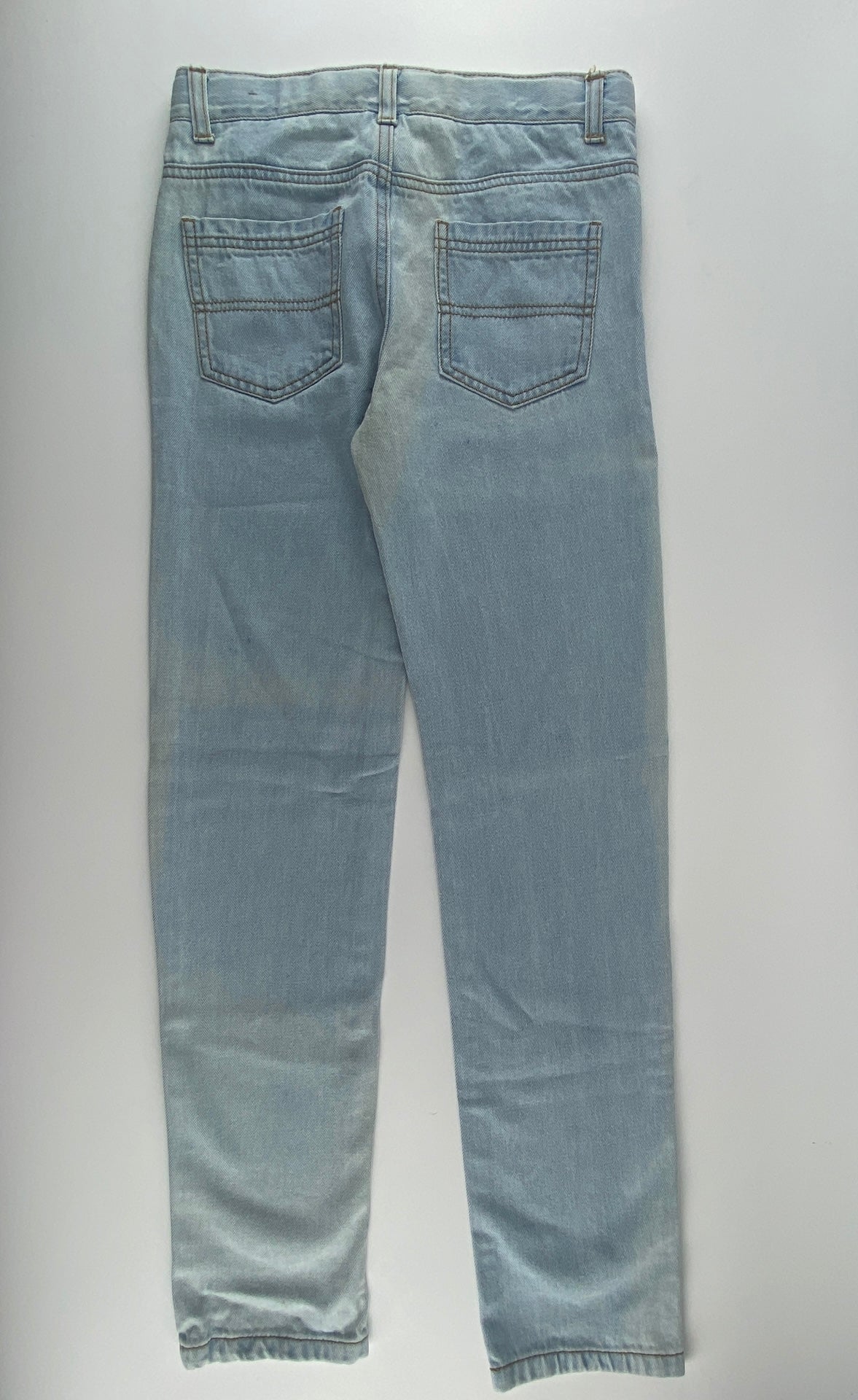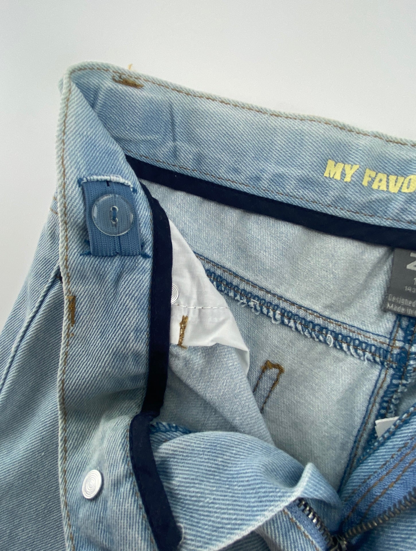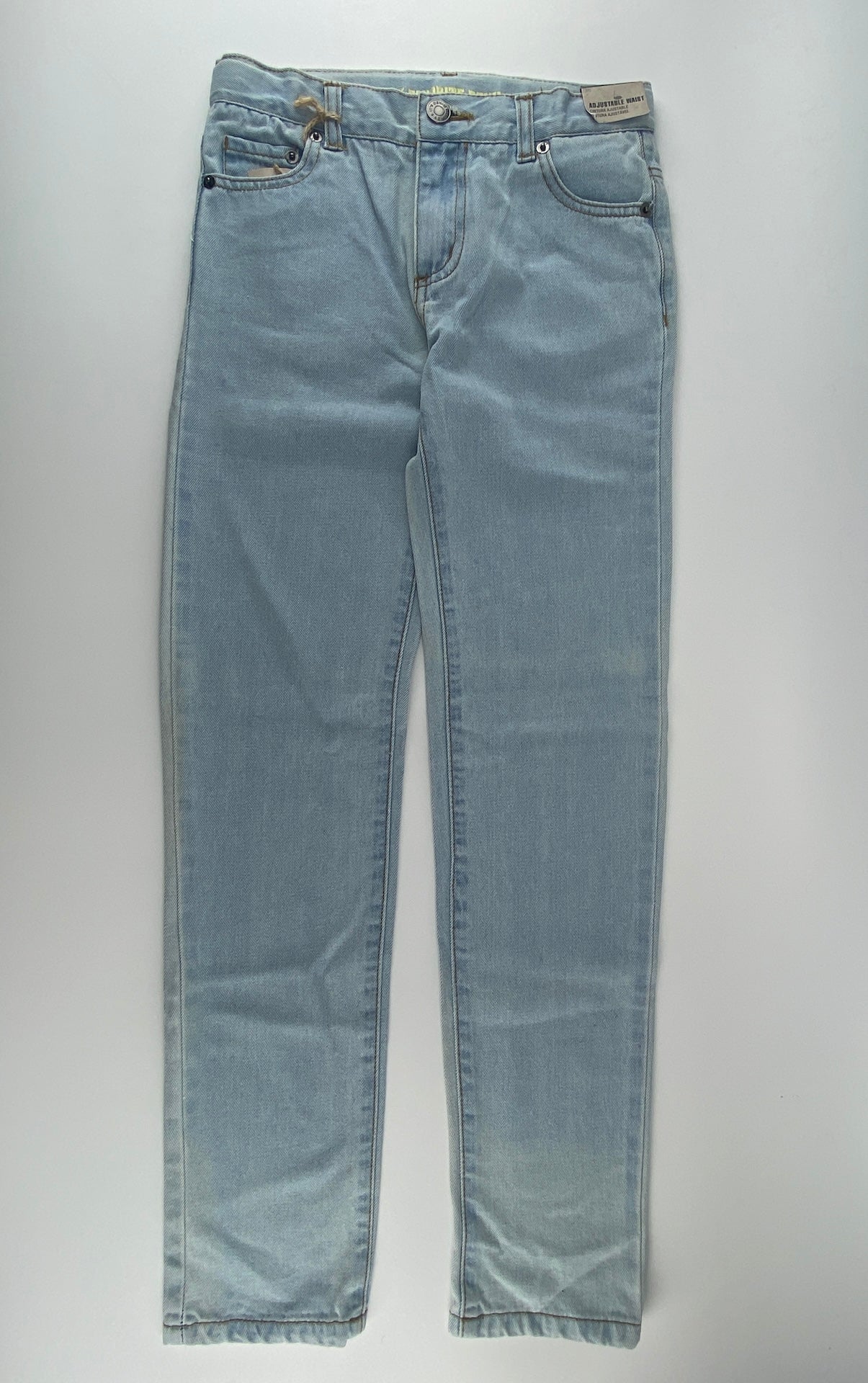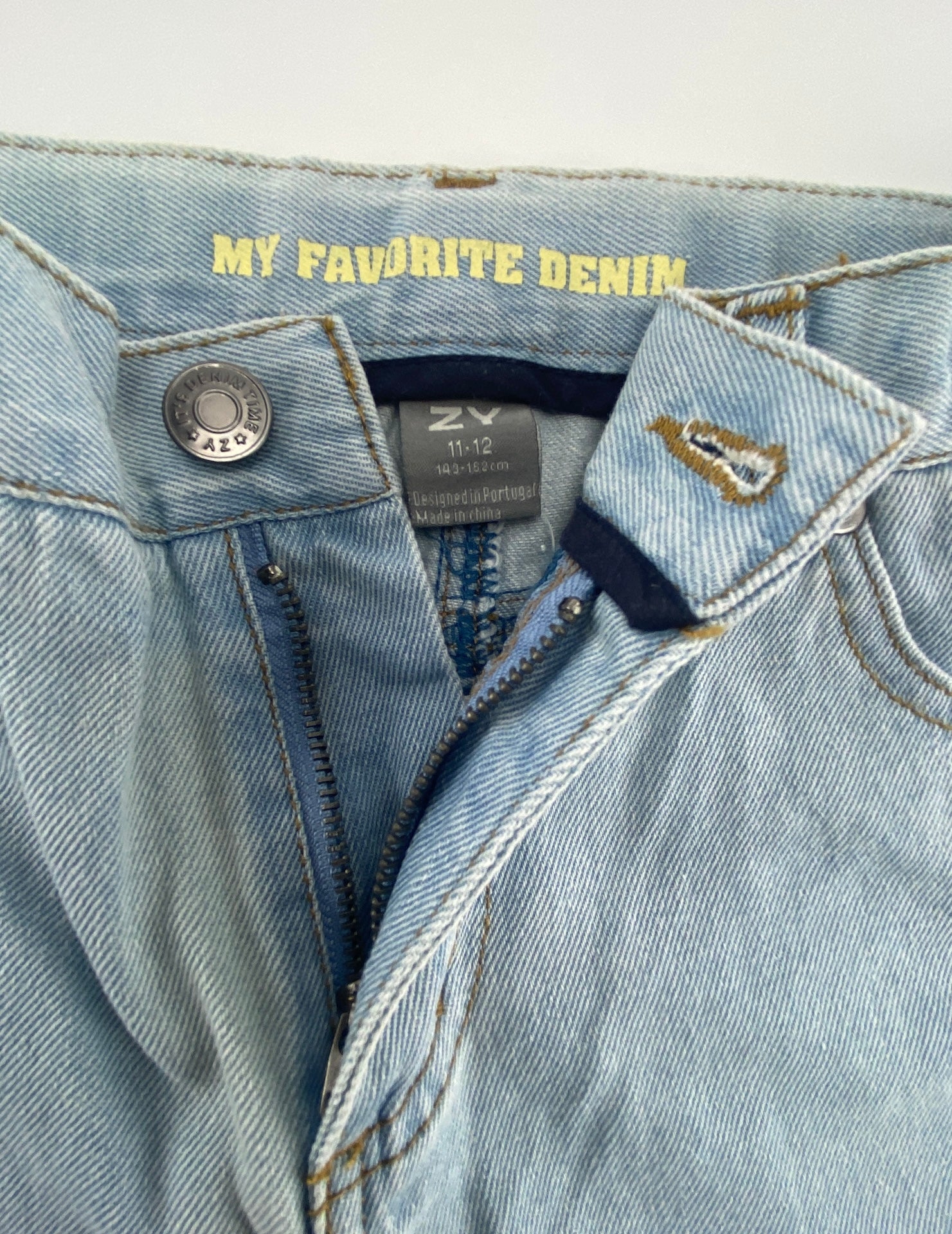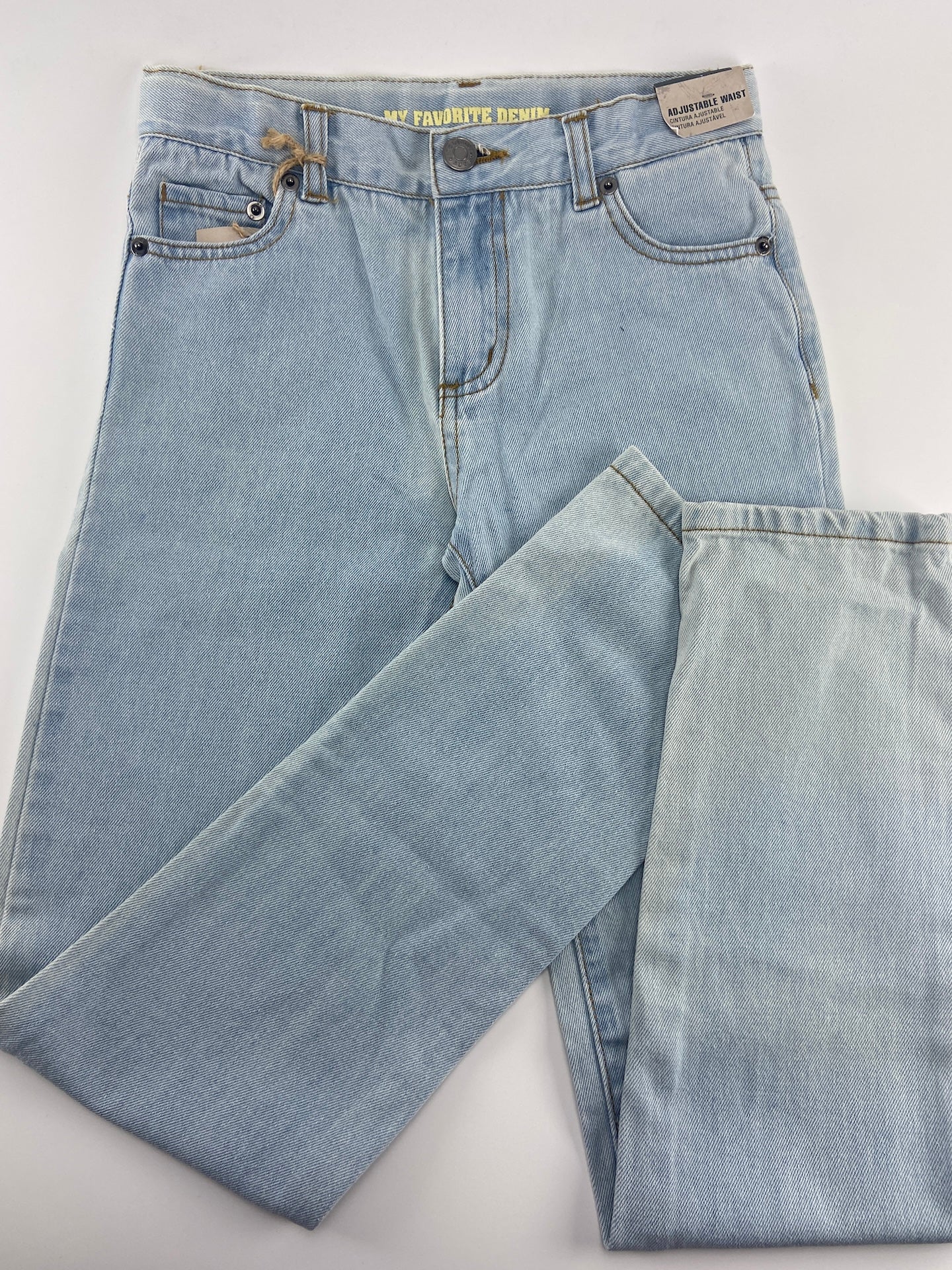Jeans regulares com 5 bolsos e elástico ajustável na cintura. Ganga clara.