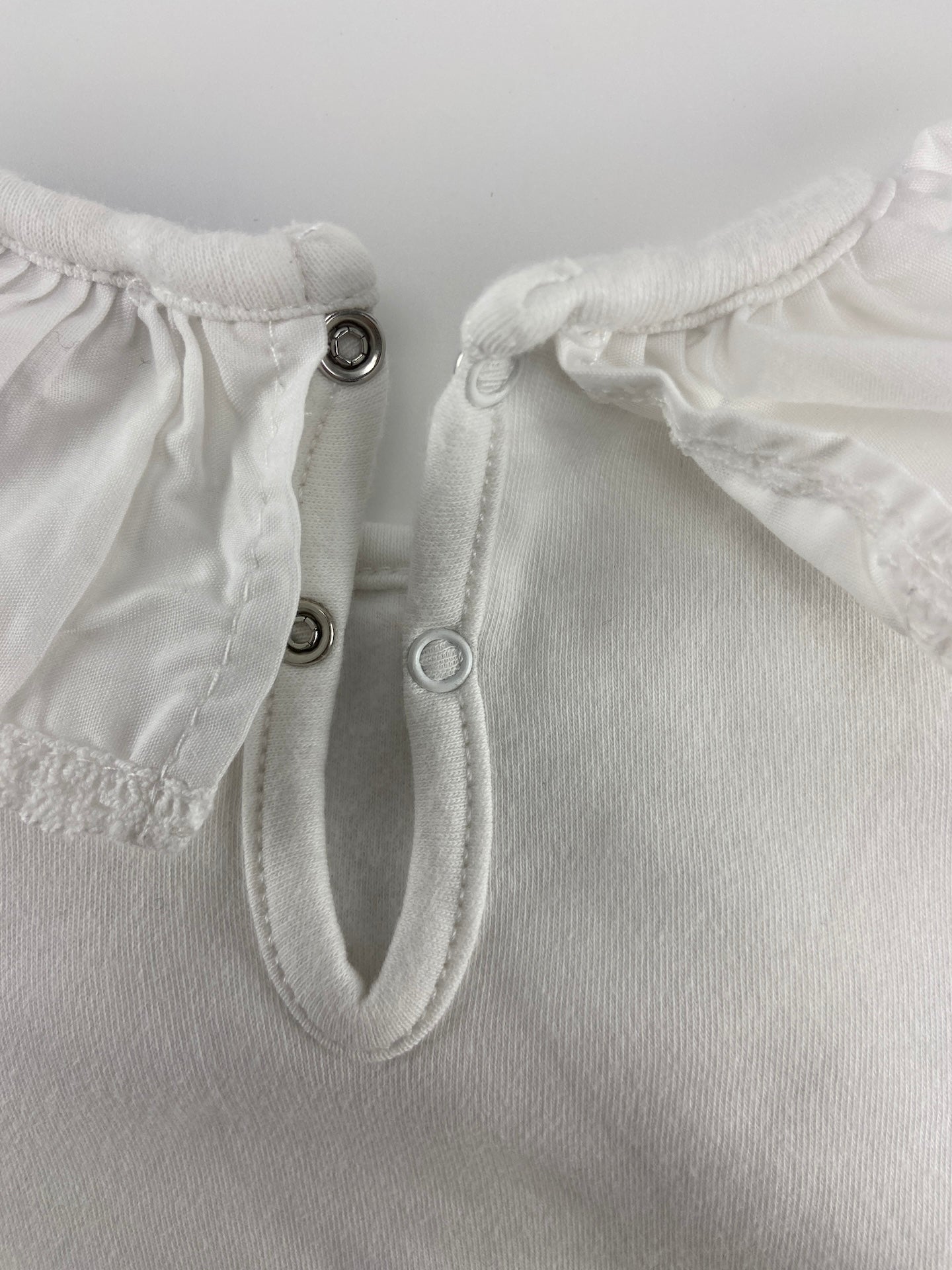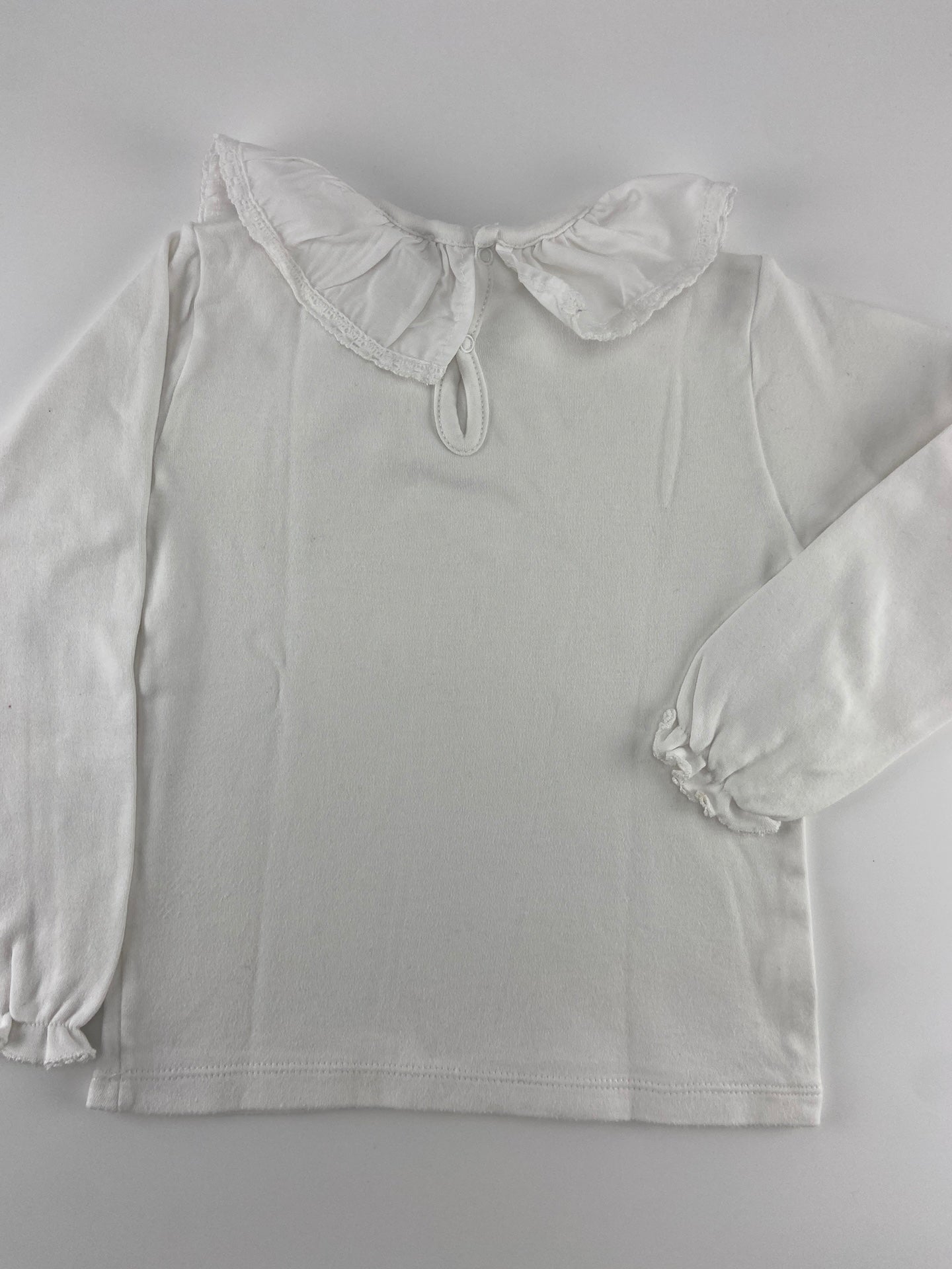 Camisola de golinha com franzido nas mangas em algodão cardado. Com molas nas costas.