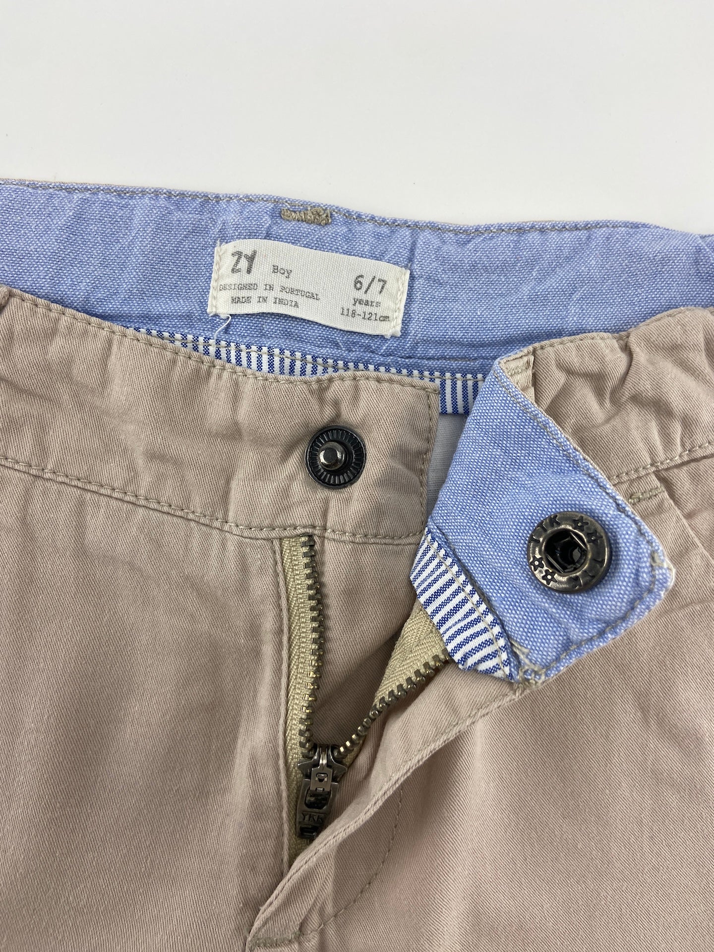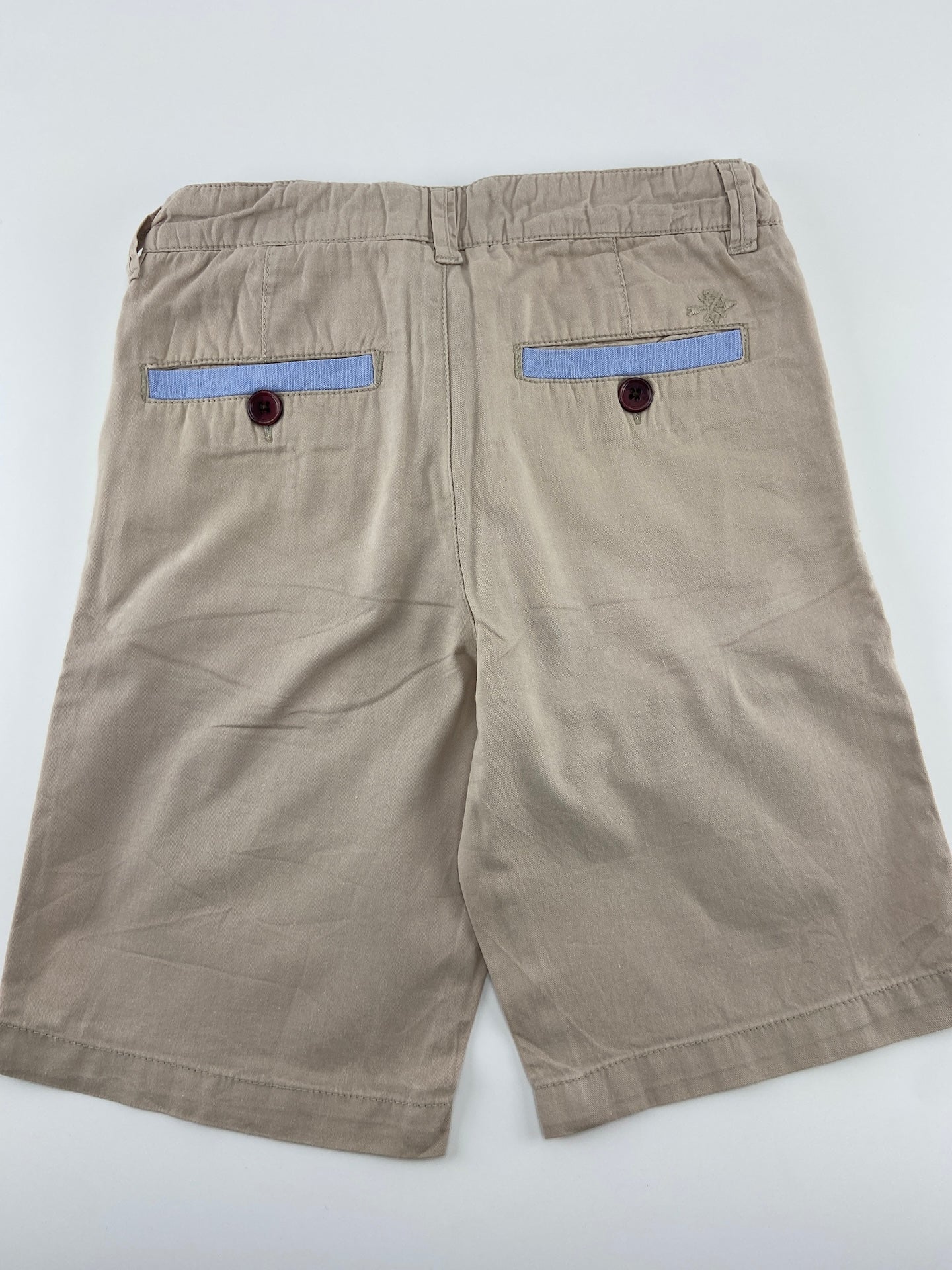 Calções de algodão com botão de mola e ajuste de elástico cintura.