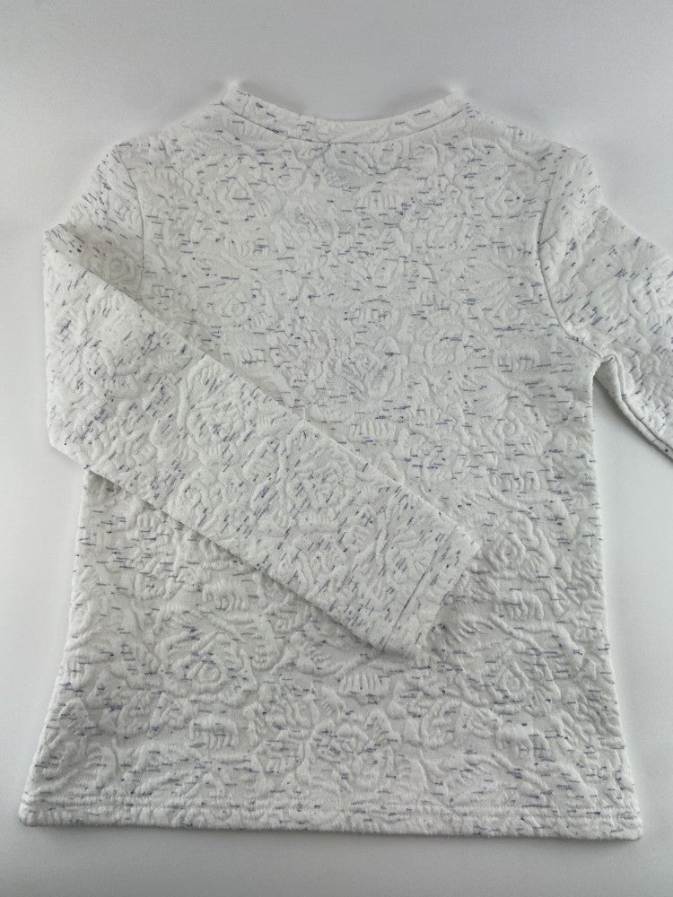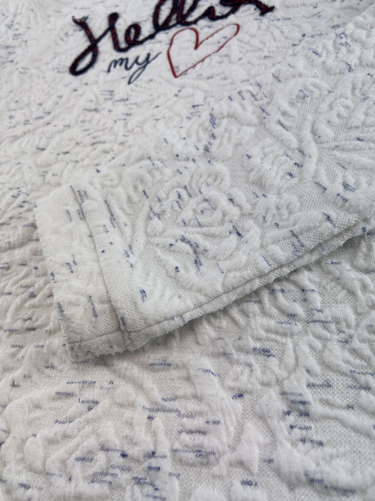 Sweatshirt com textura e padrão irregular. Aplicação de letras na frente.