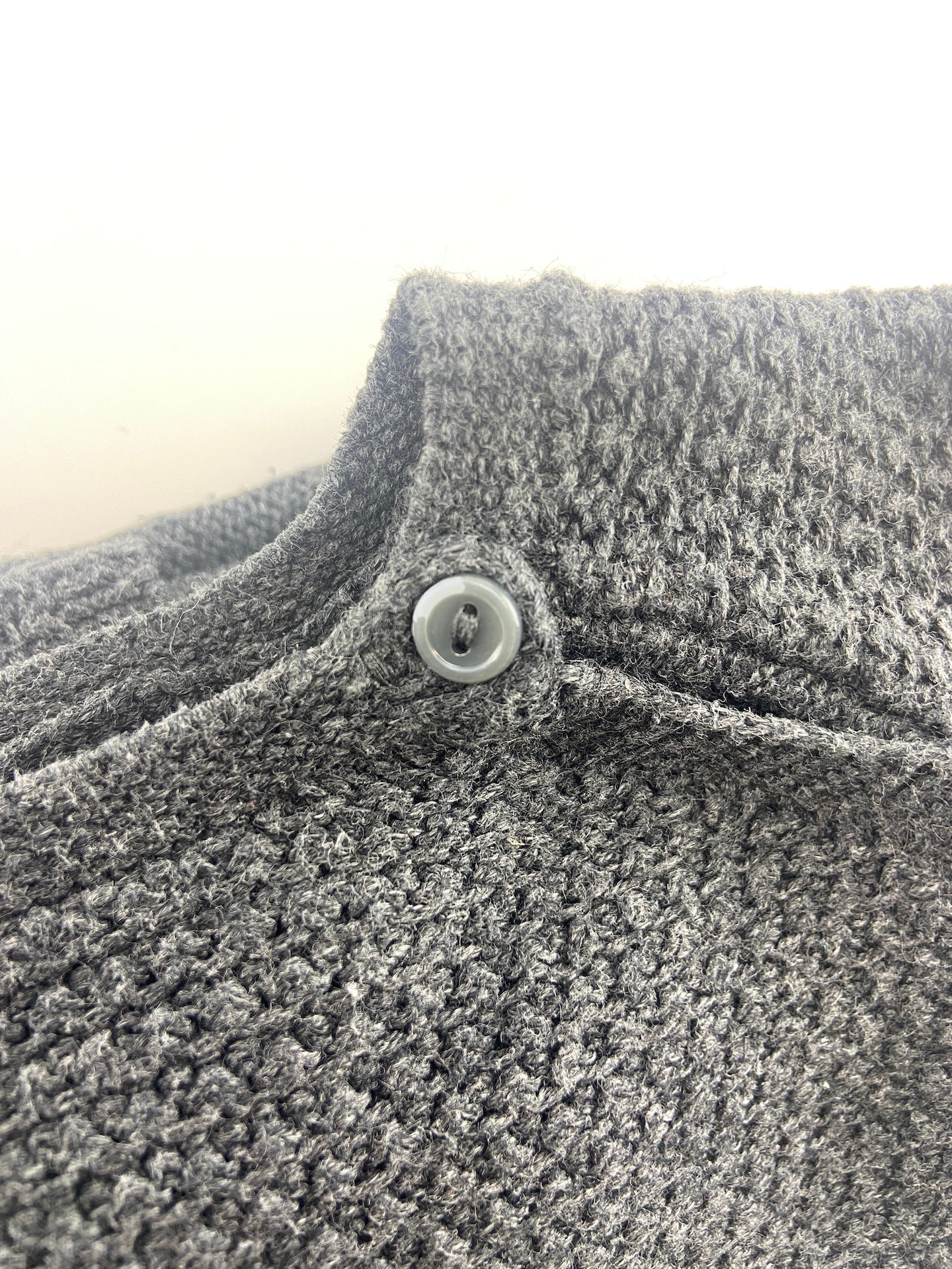 Conjunto em malha de algodão. Casaco de cruzar com botões no ombro.