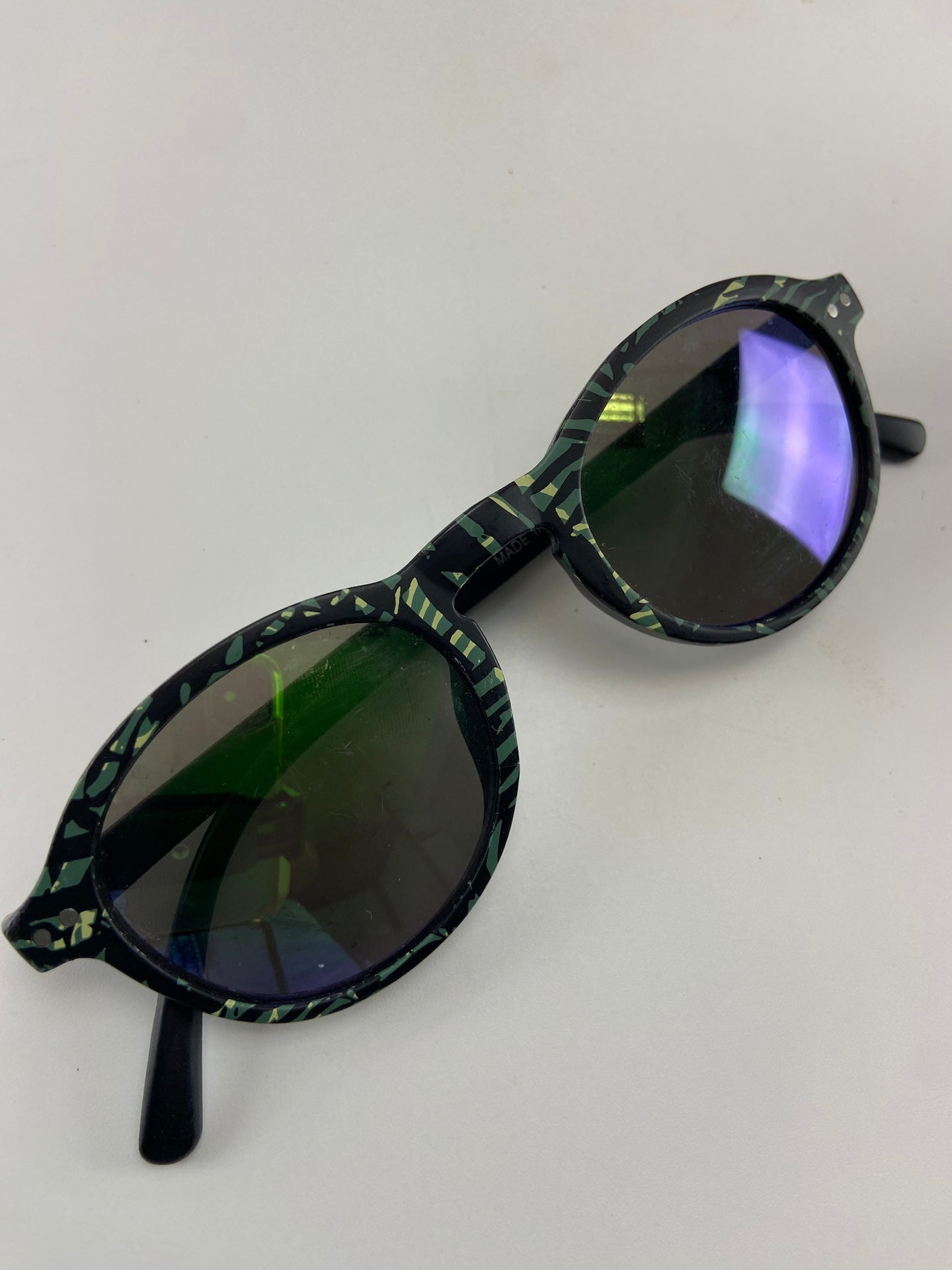 Óculos escuros com padrão. Vem com uma caixa de outra marca.