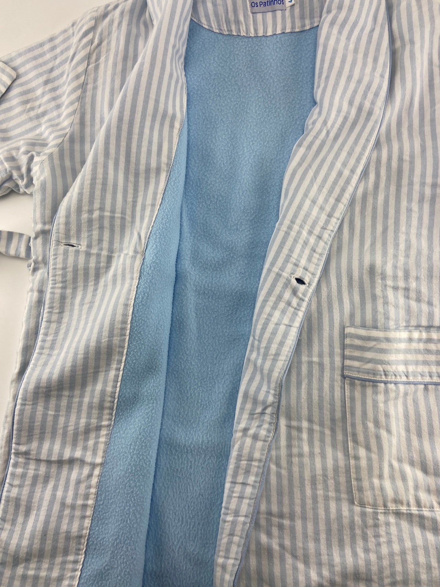 Roupão de vaiela forrado a tecido polar.