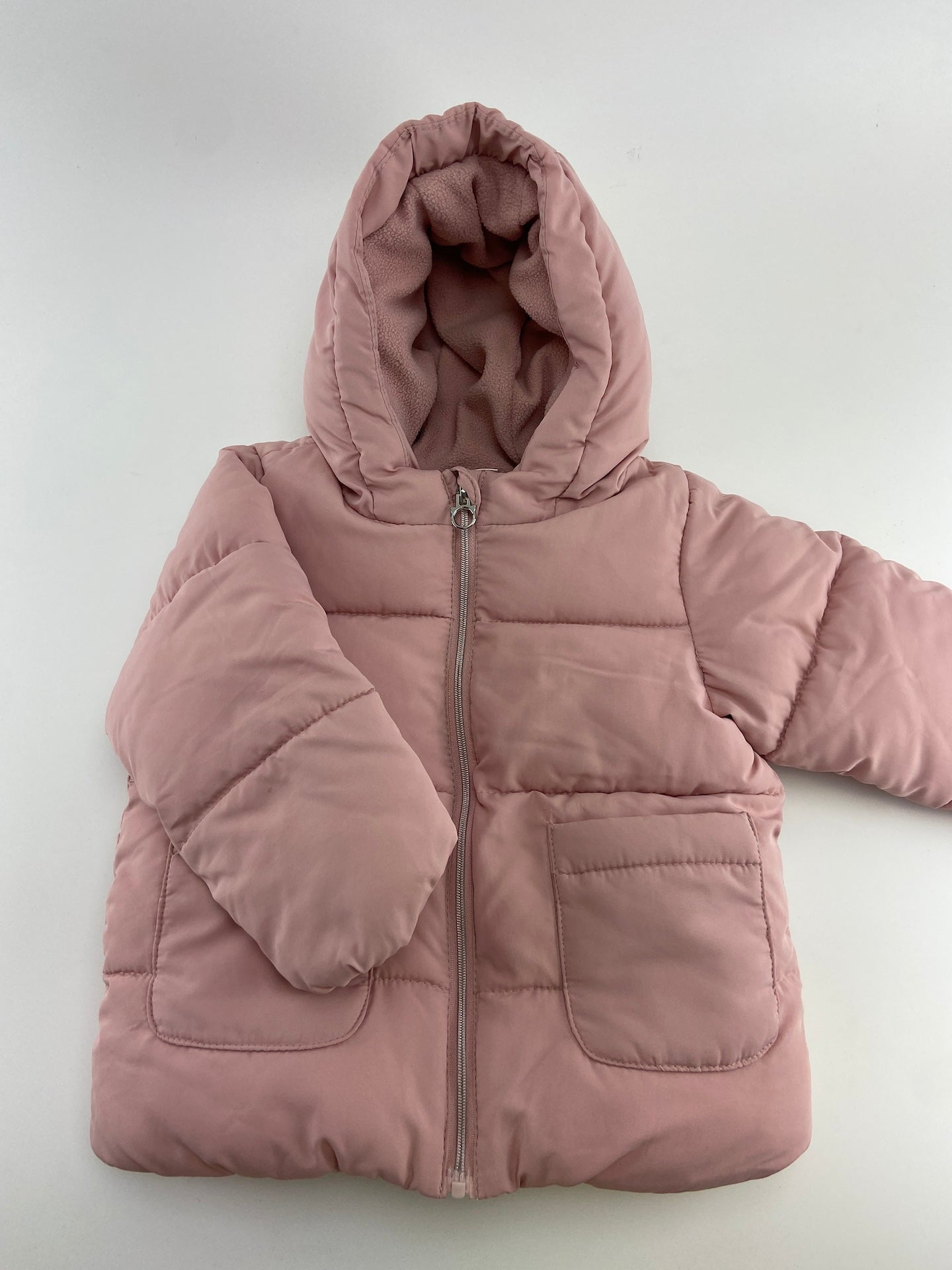 Blusão acolchoado com capuz forrado a polar.