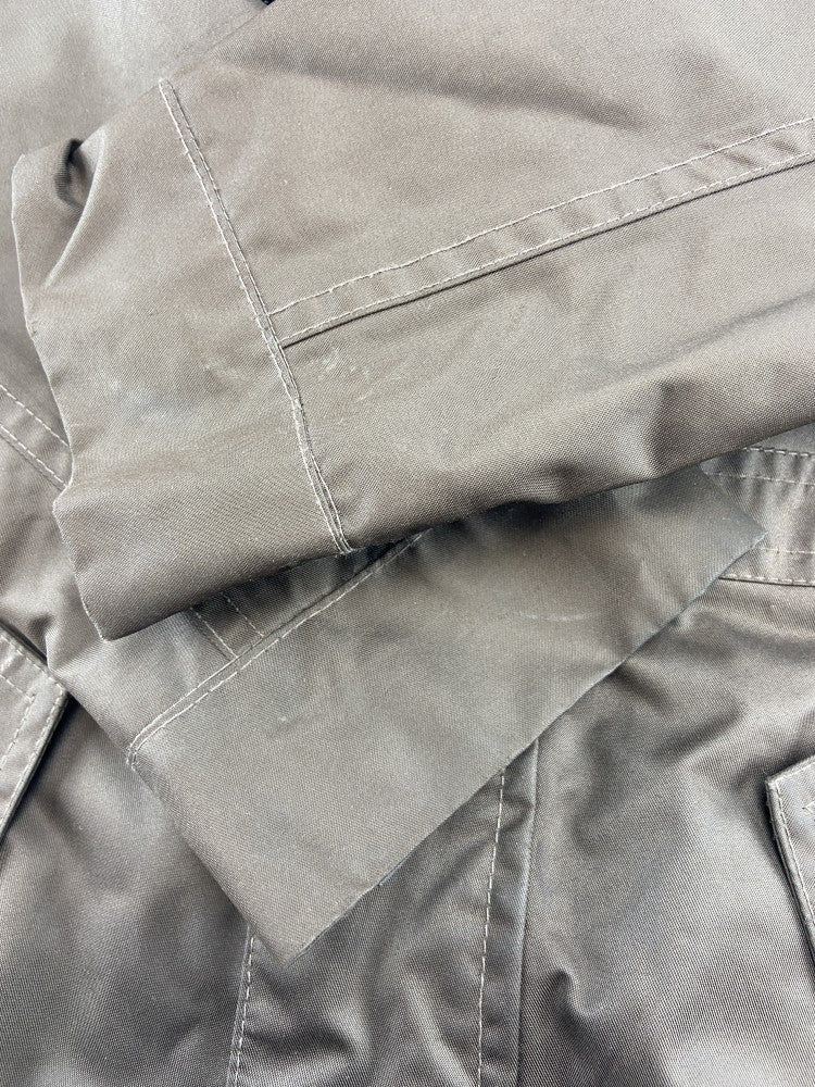 Algumas manchas de utilização na carcela, junto à bainha e nos punhos.
