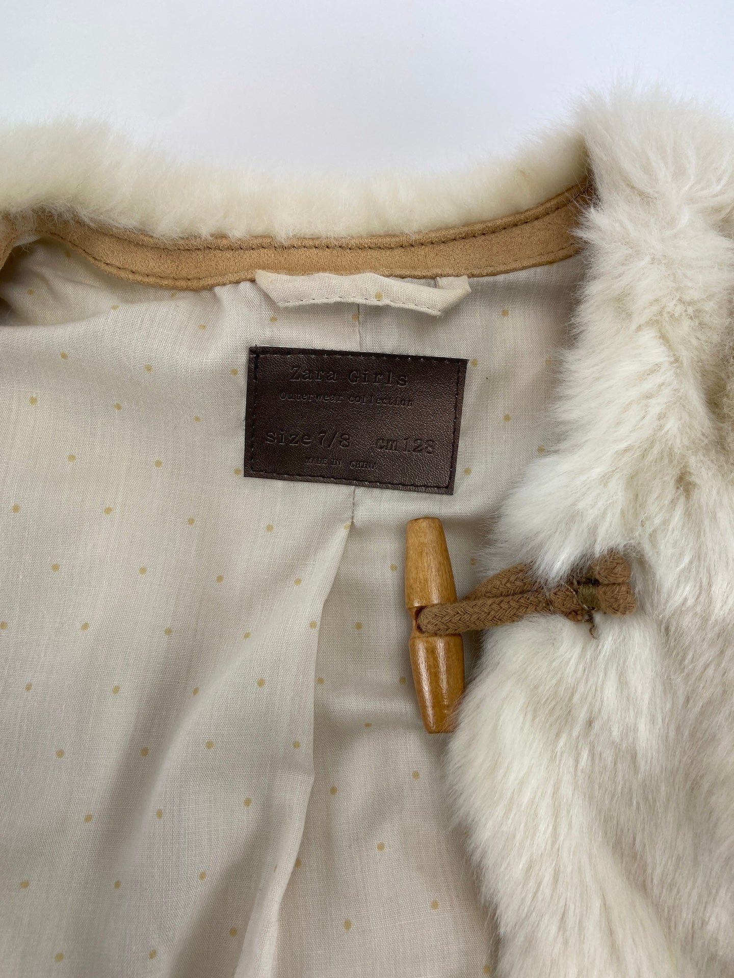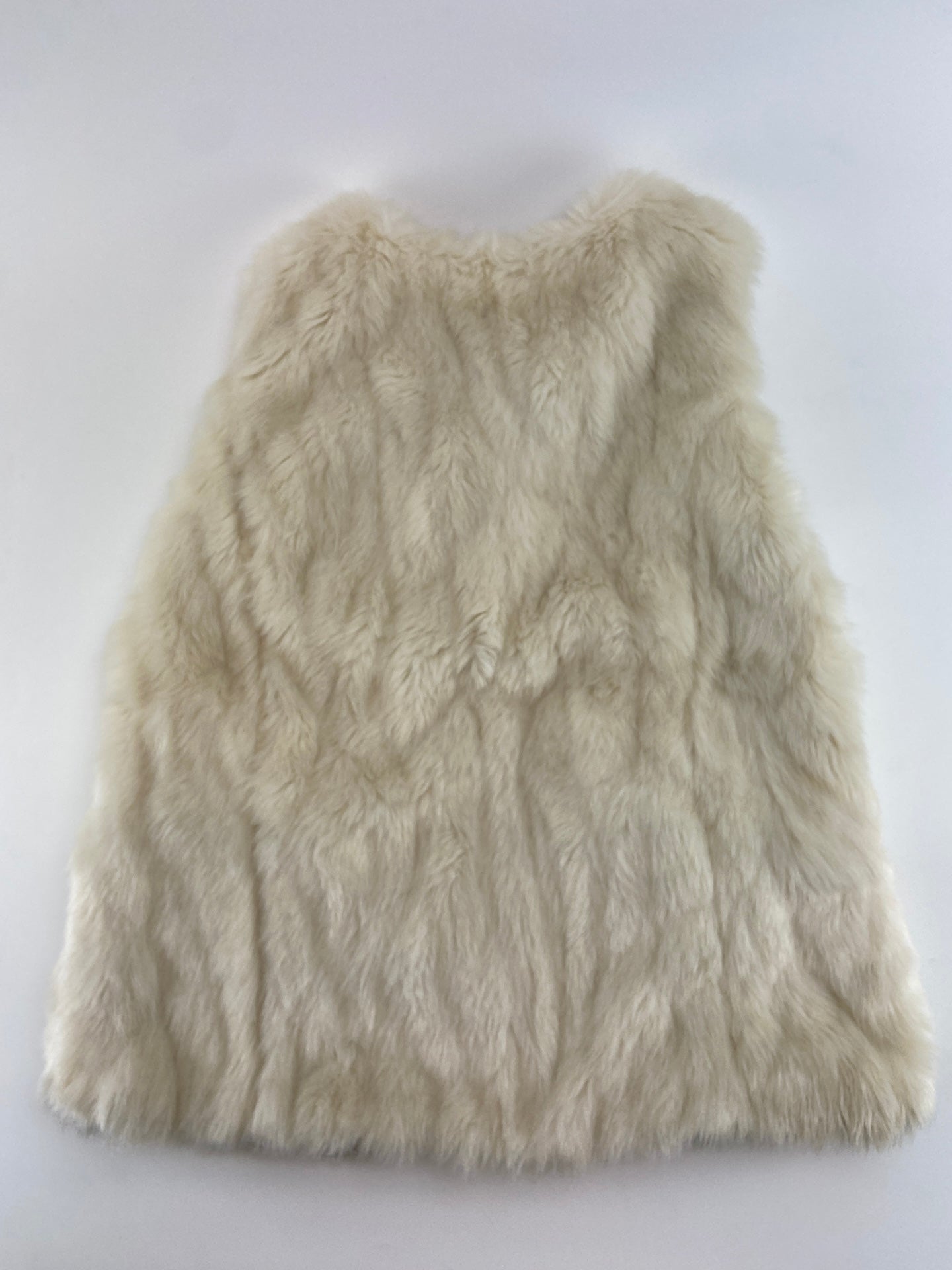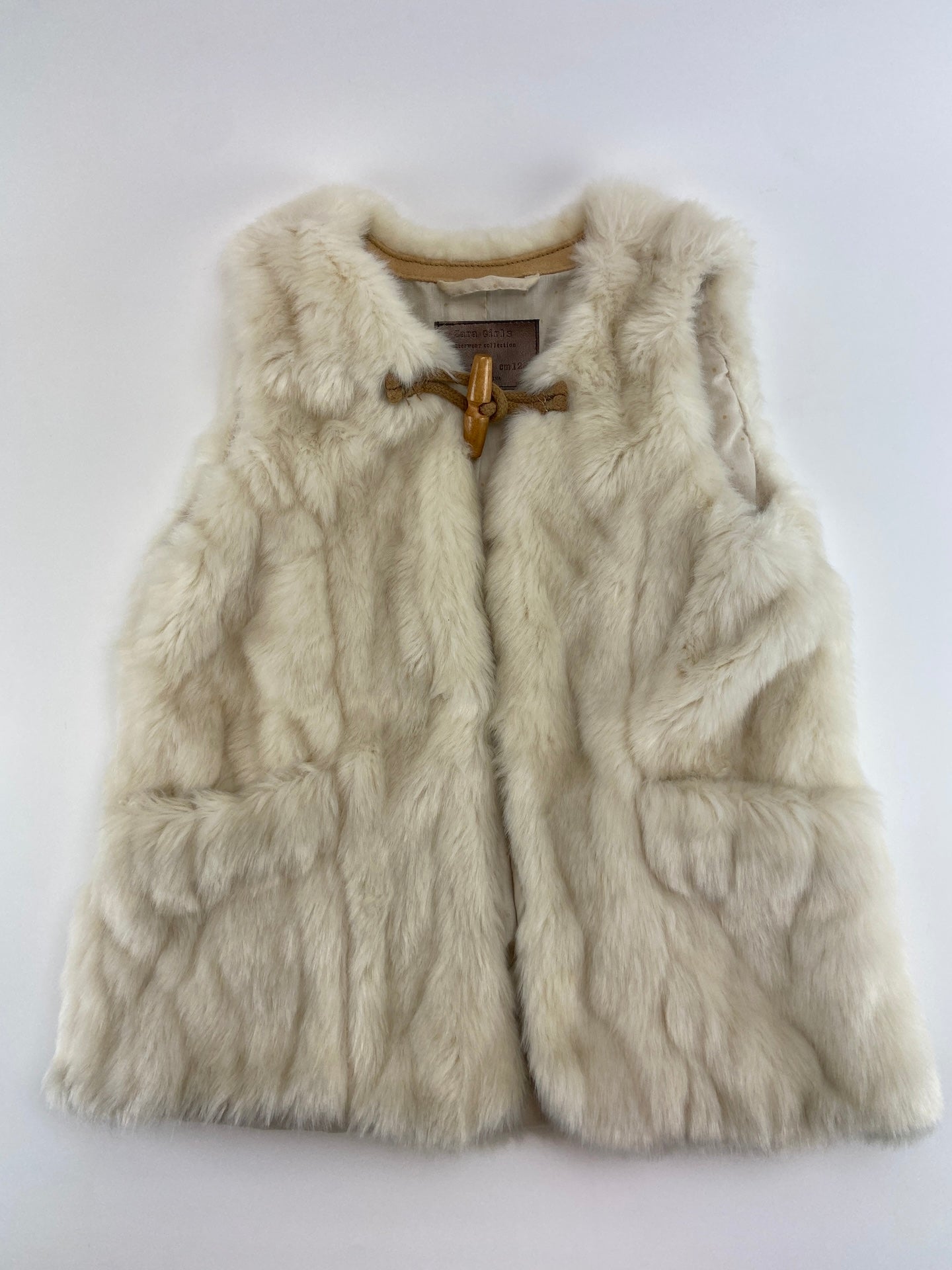 Colete com pelo de abotoar à frente. Com bolsos na frente. Forrado a tecido.