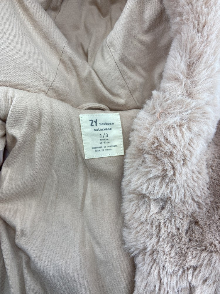 Blusão em pelúcia com capuz de orelhas. Forrado com fecho em colchete.