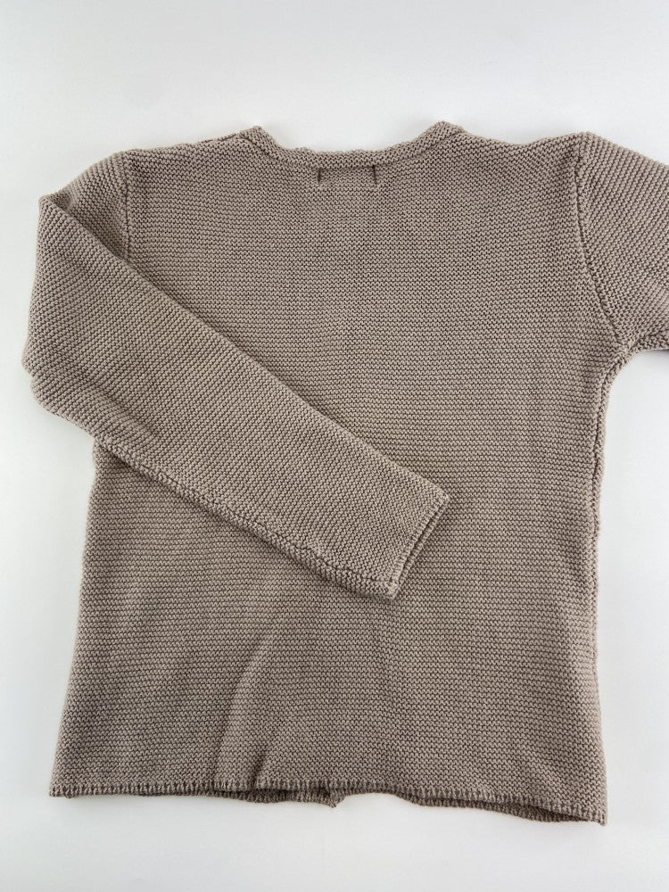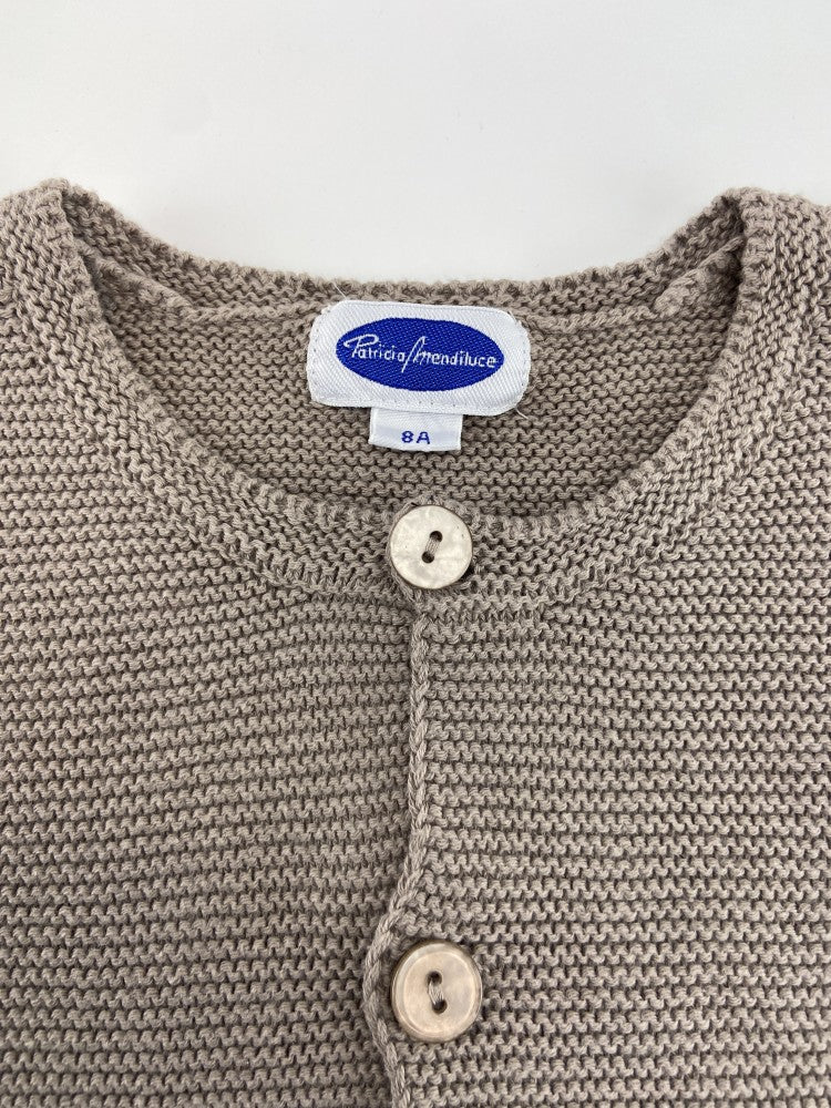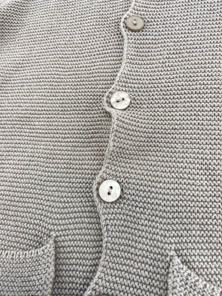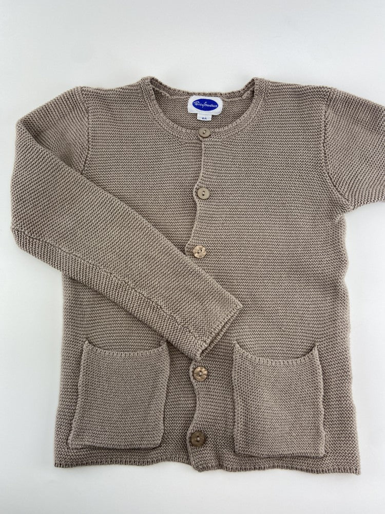 Casaco clássico em malha de algodão. Com bolsos exteriores na frente.