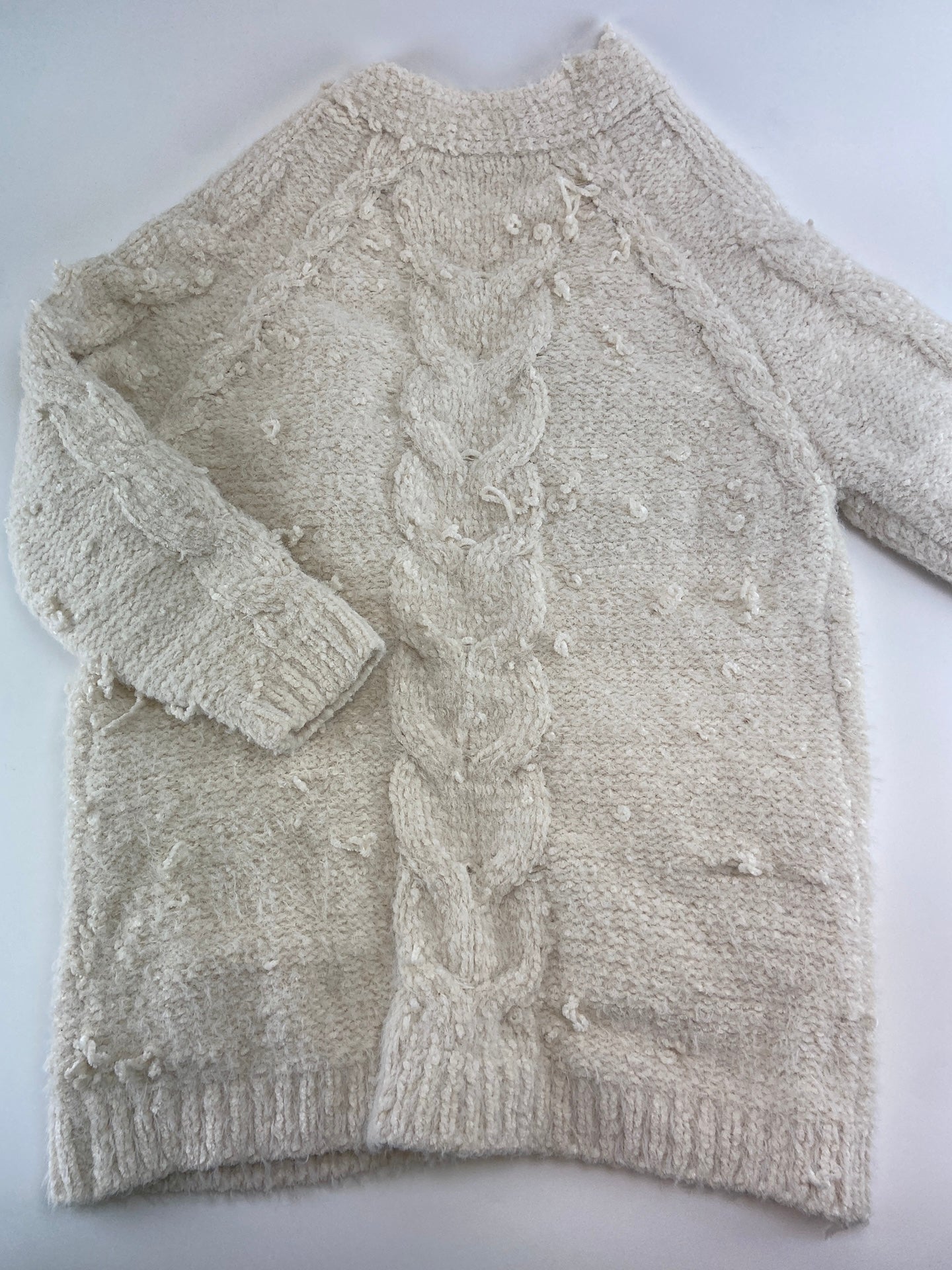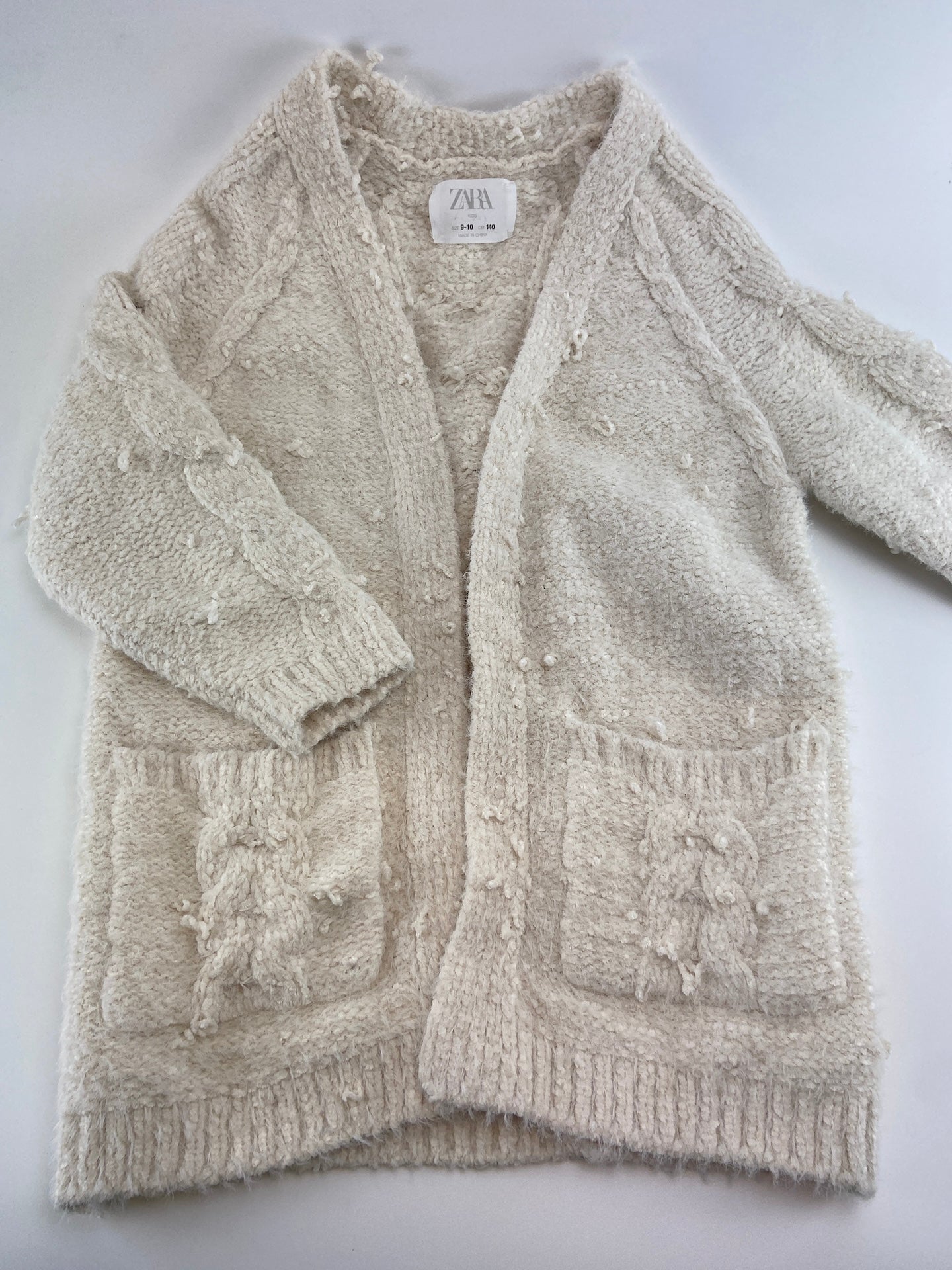 Casaco grosso oversize aberto com bolsos na frente. Efeito desfiado.