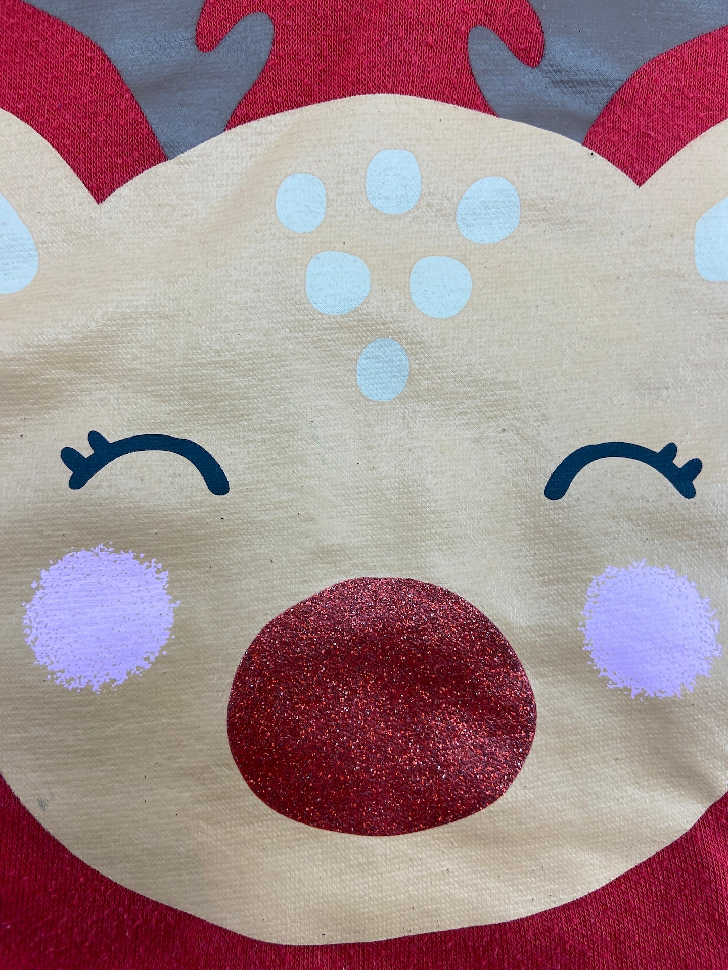 Sweat com rena Rodolfo estampada com brilhantes no nariz.