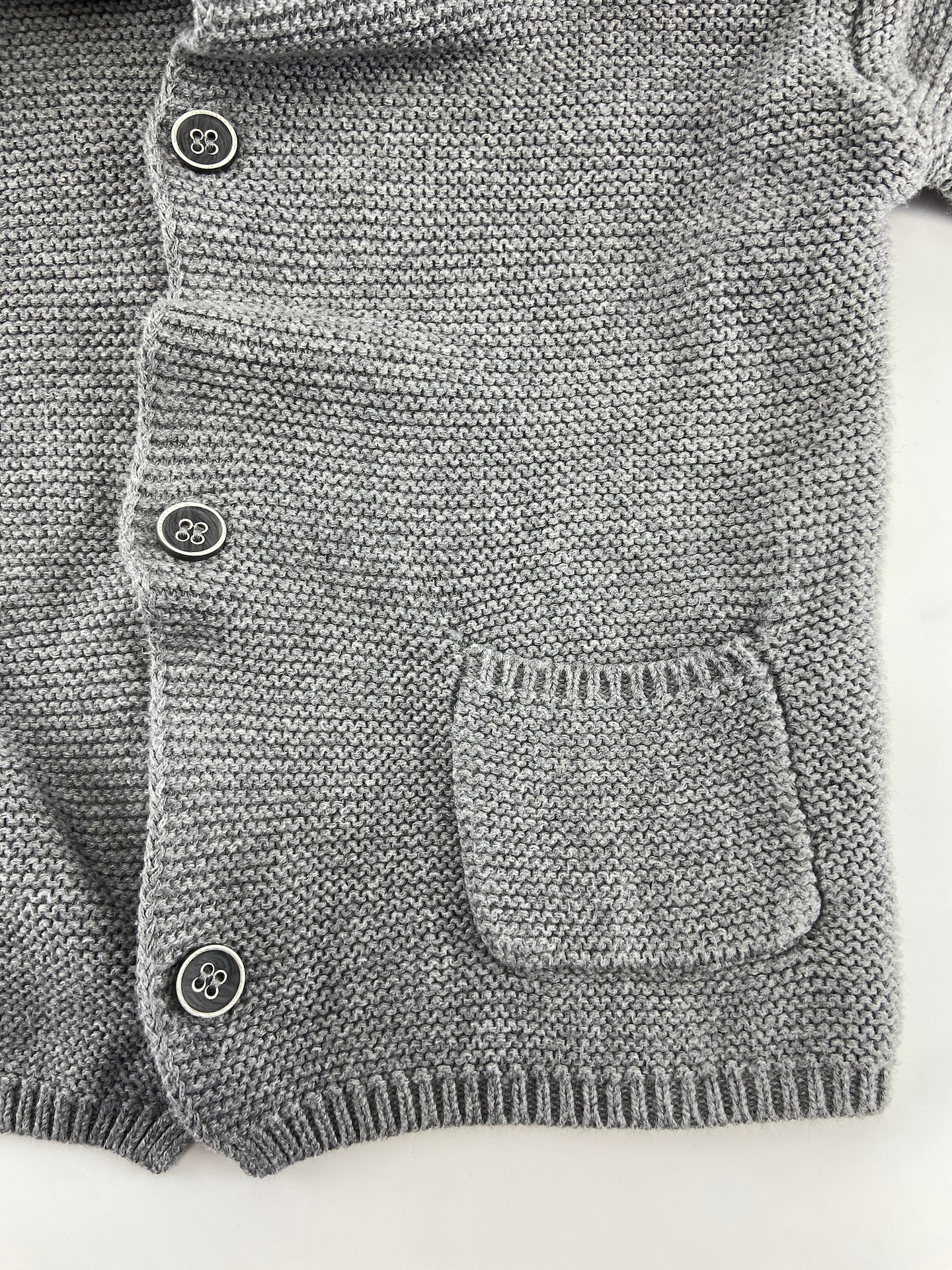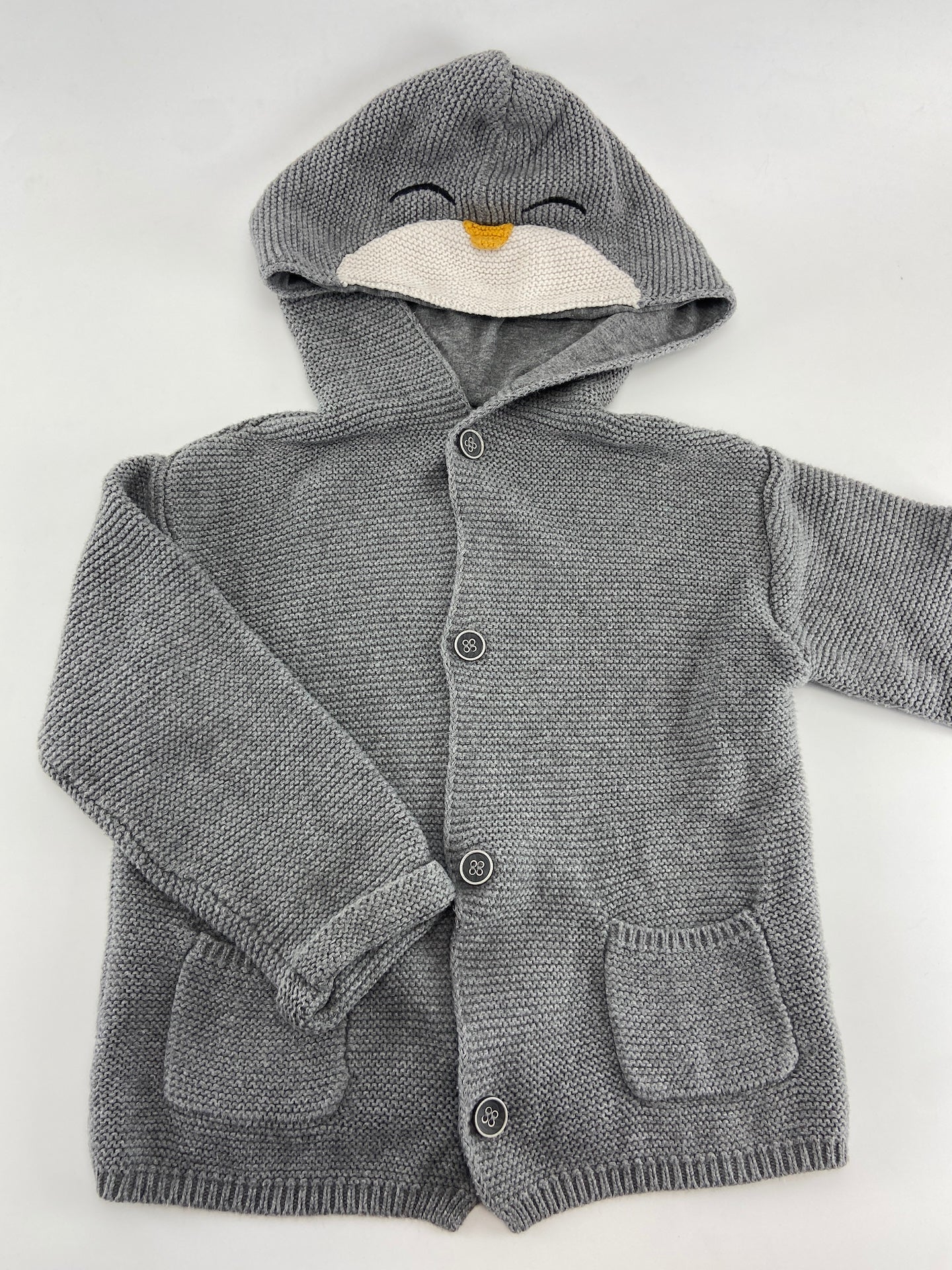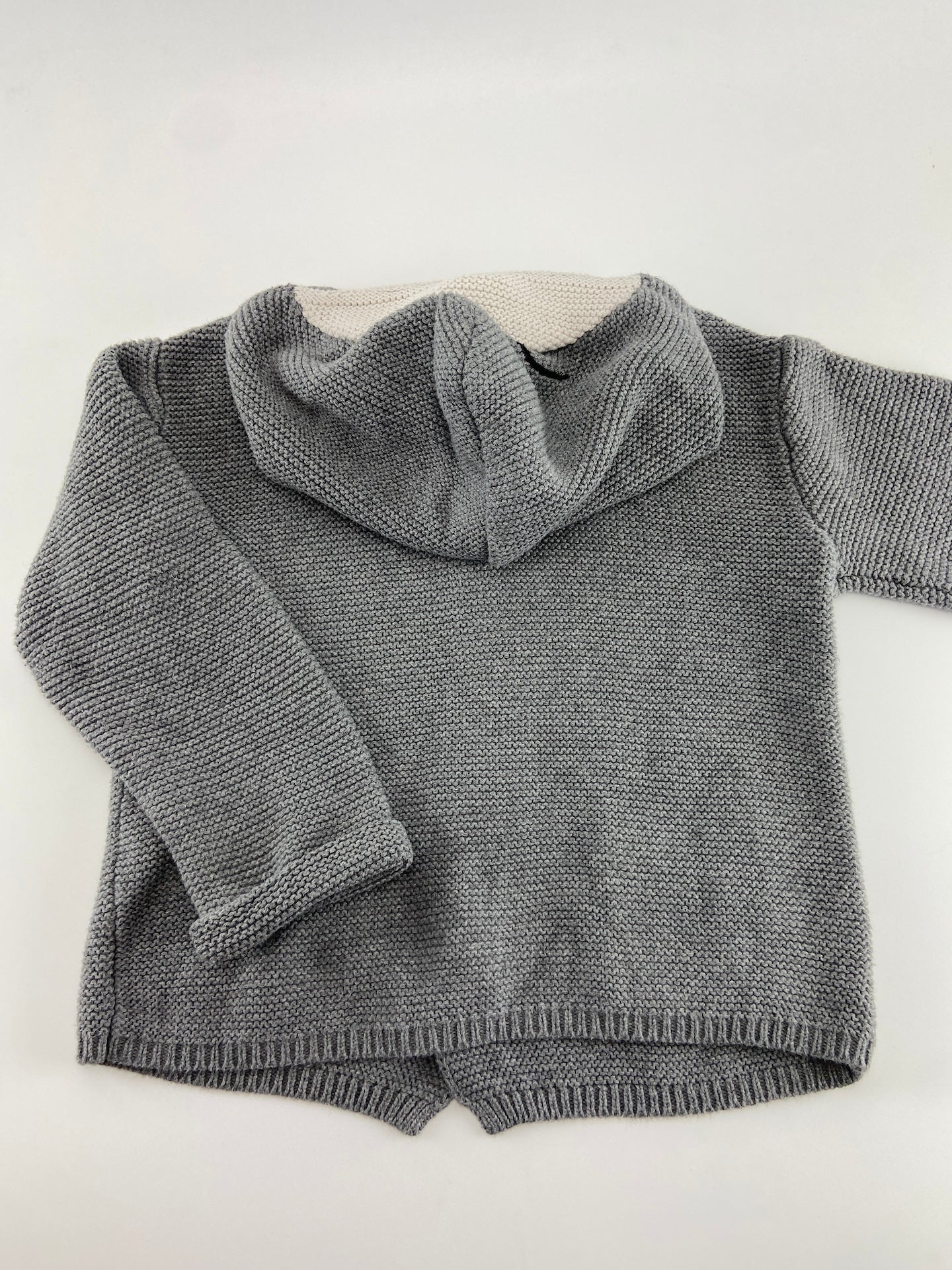 Casaco de malha com capuz forrado. Capuz com pintainho.