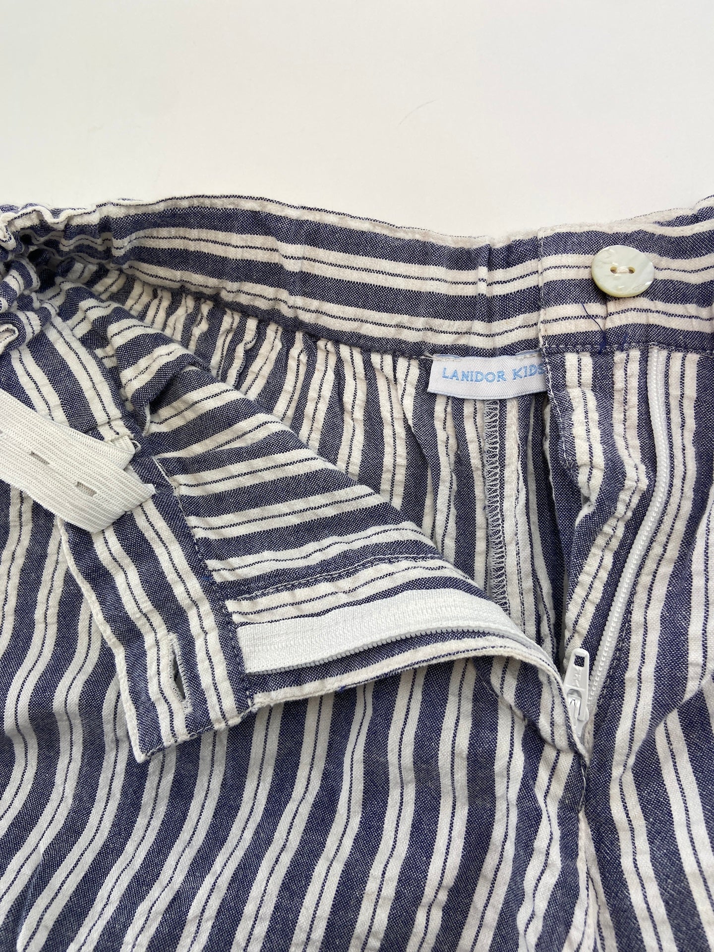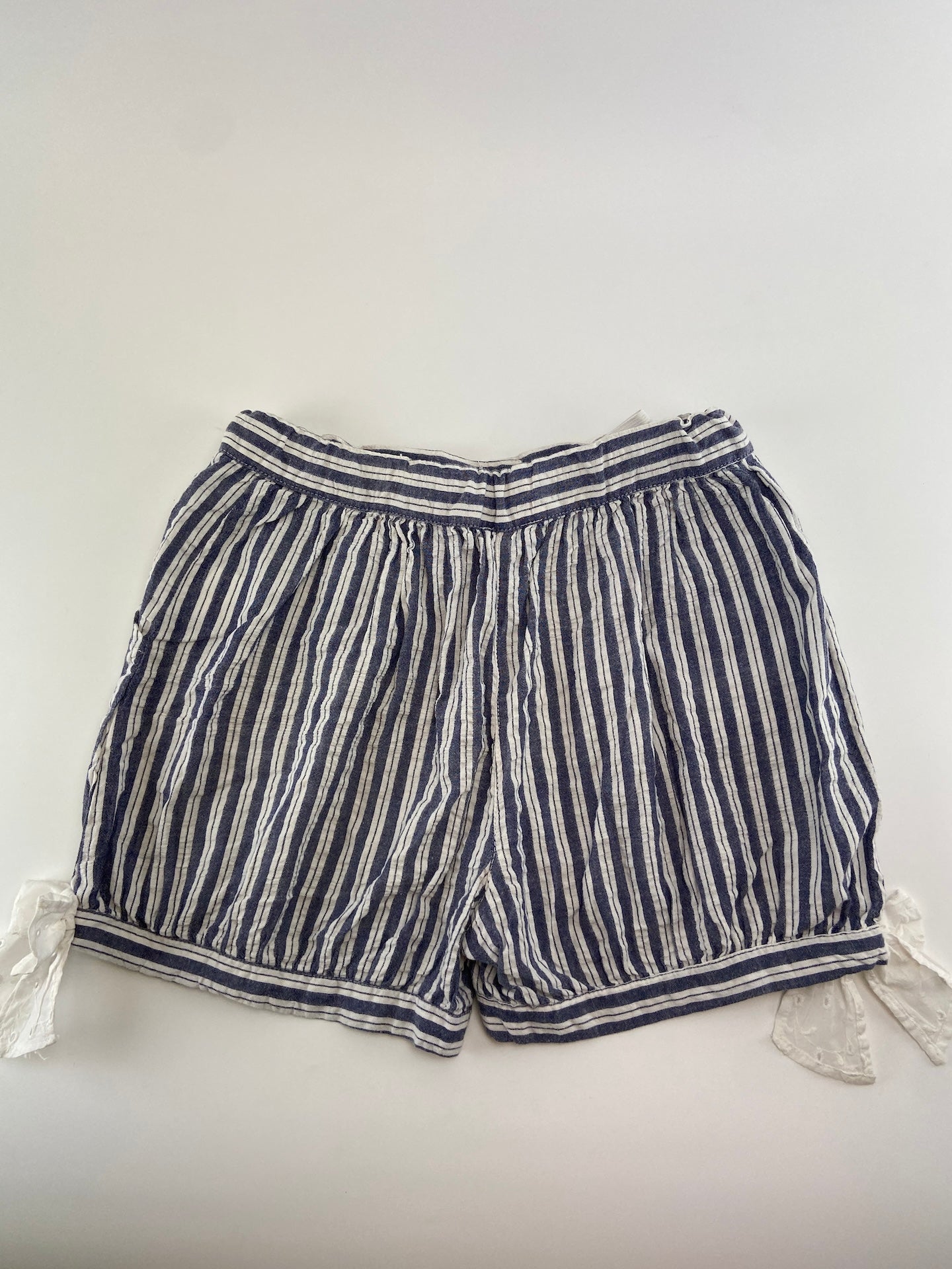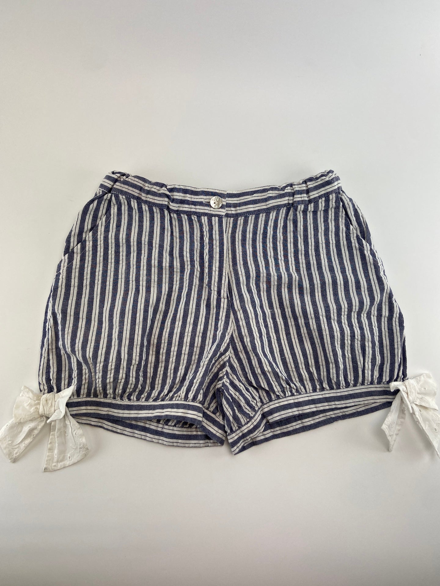 Calções de riscas em tecido texturado com laços laterais. Com elástico de ajuste na cintura.