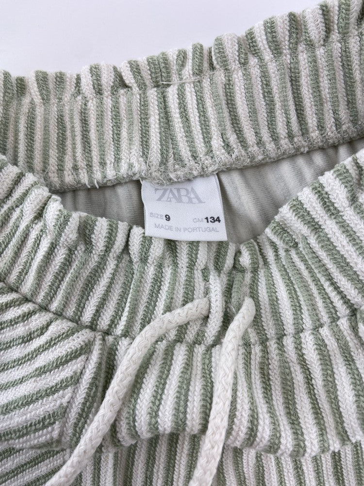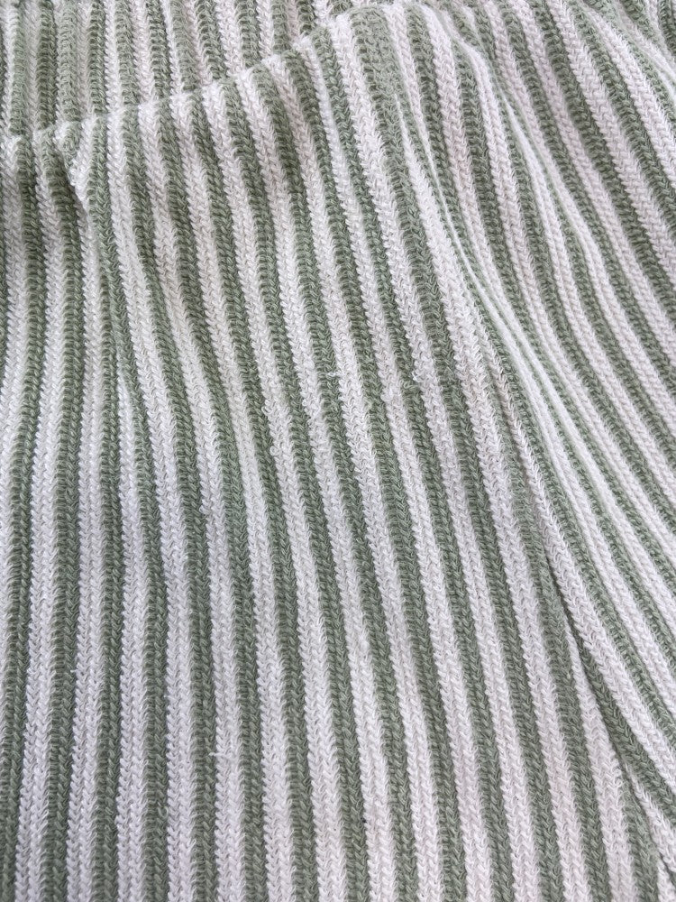 Calções texturado leves com elástico na cintura, padrão de riscas e bolsos esxteriores.