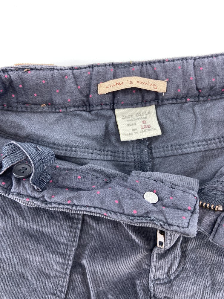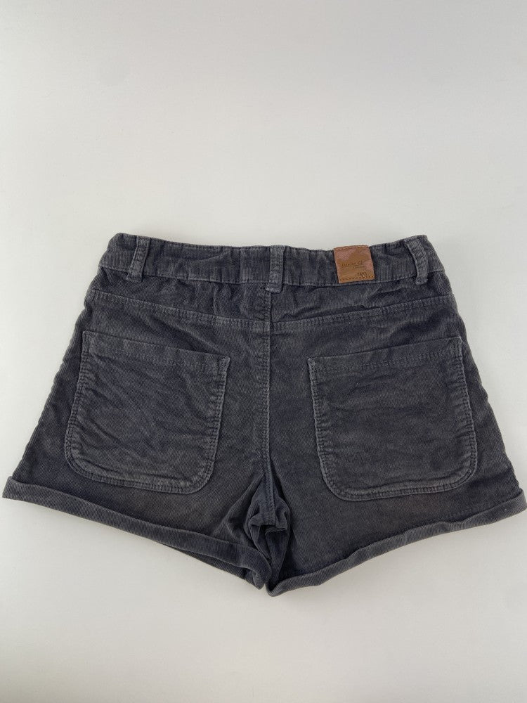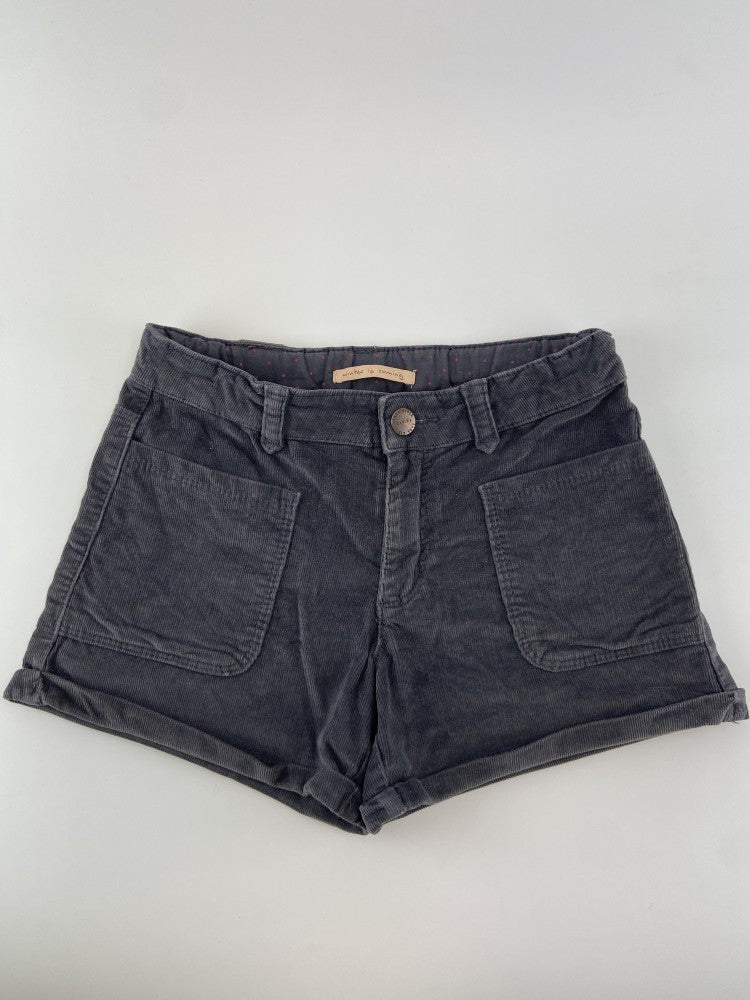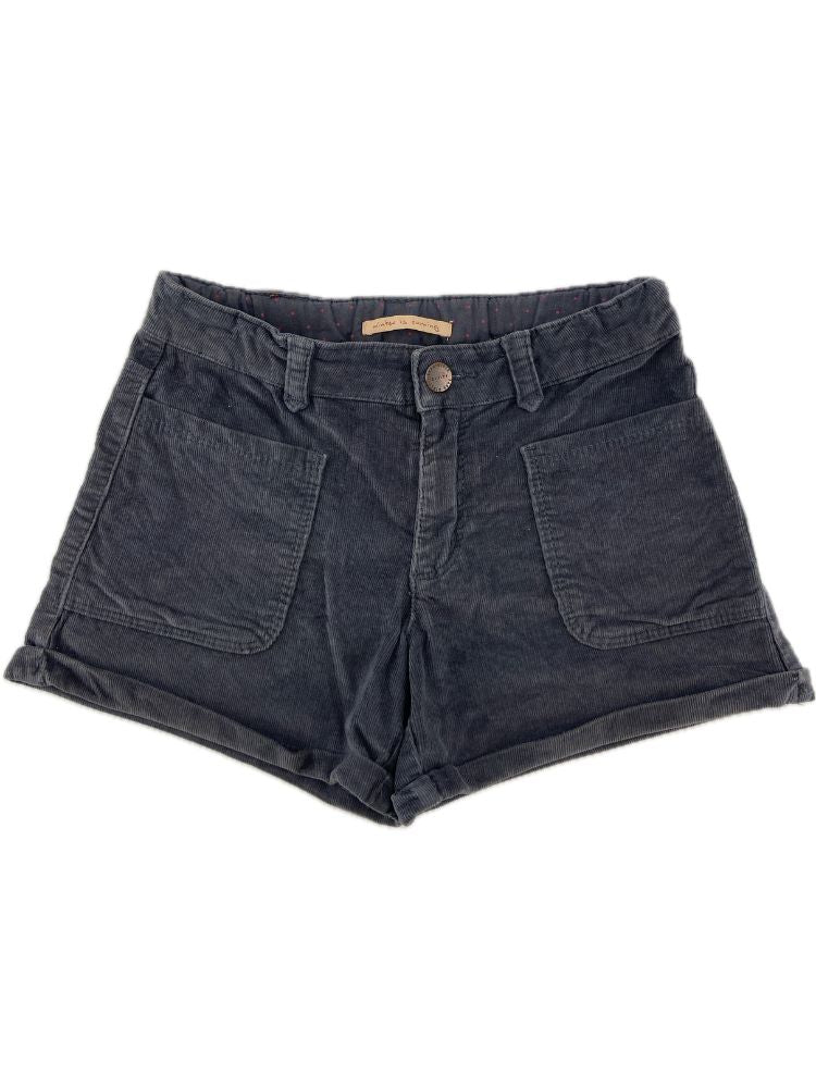 Calções em bombazine com bolsos na frente. Com elásticos de ajuste na cintura.