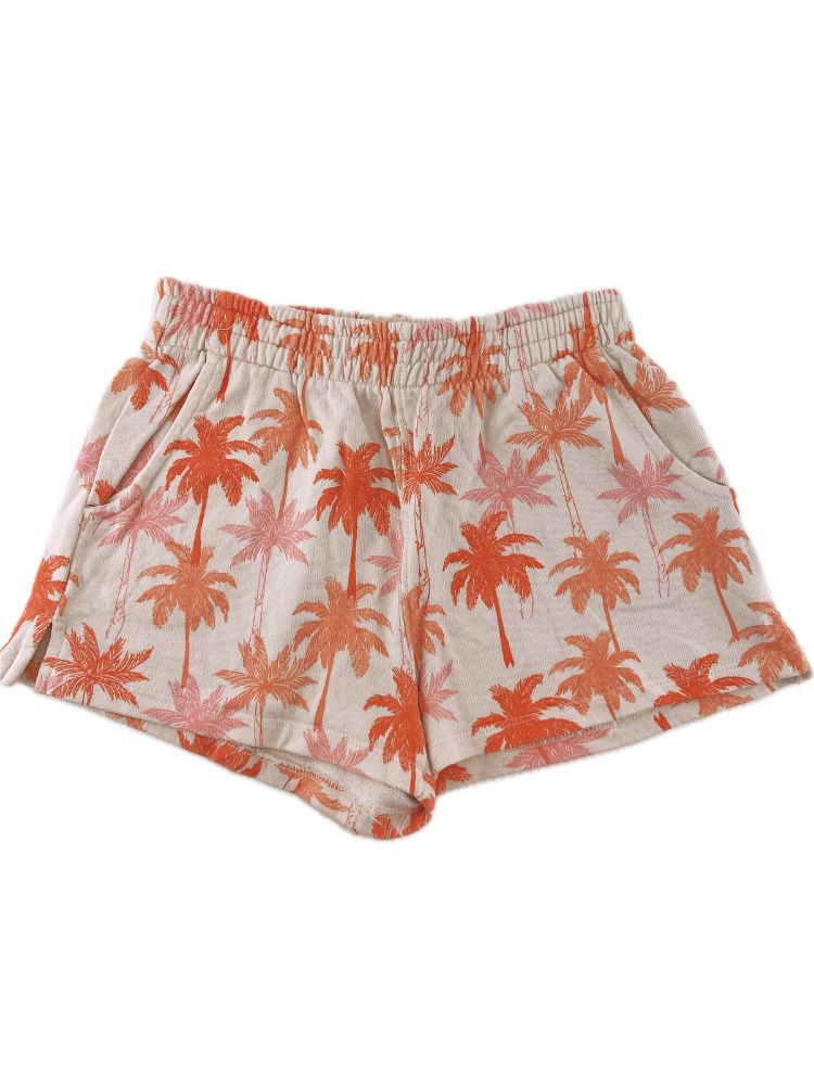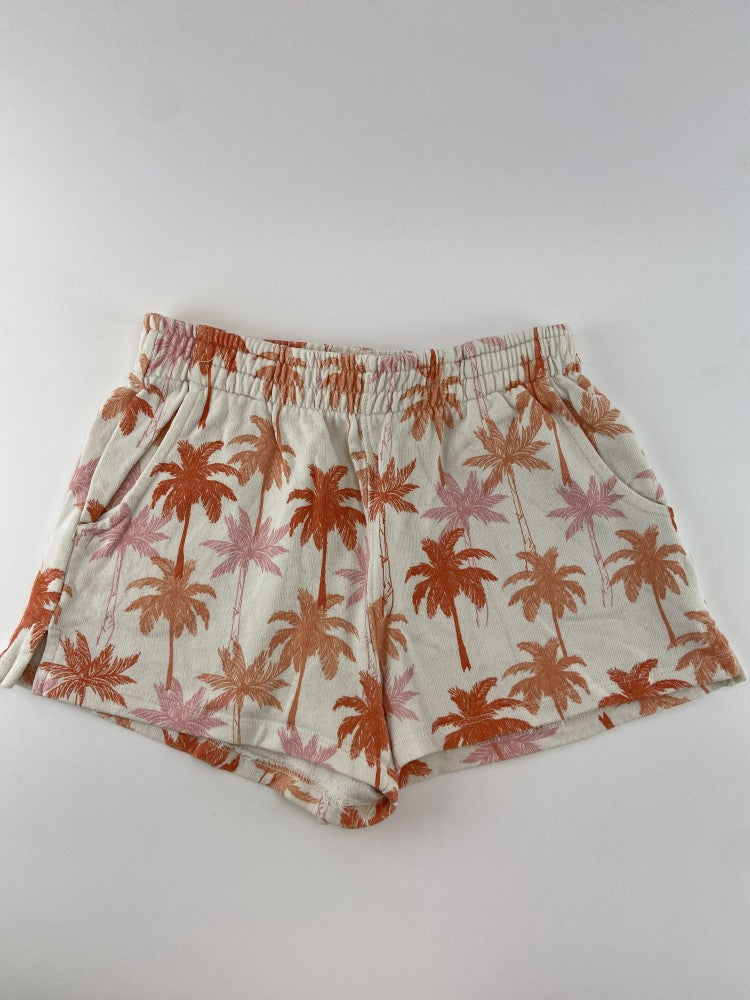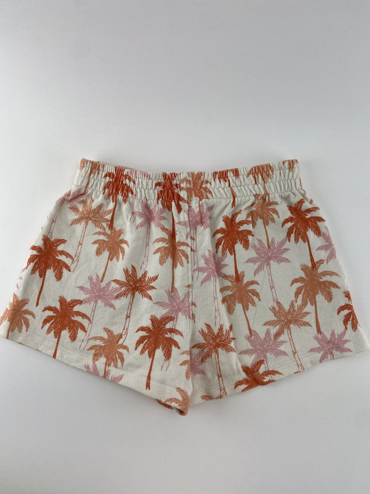 Calções leves de elástico na cintura e com padrão de palmeiras.