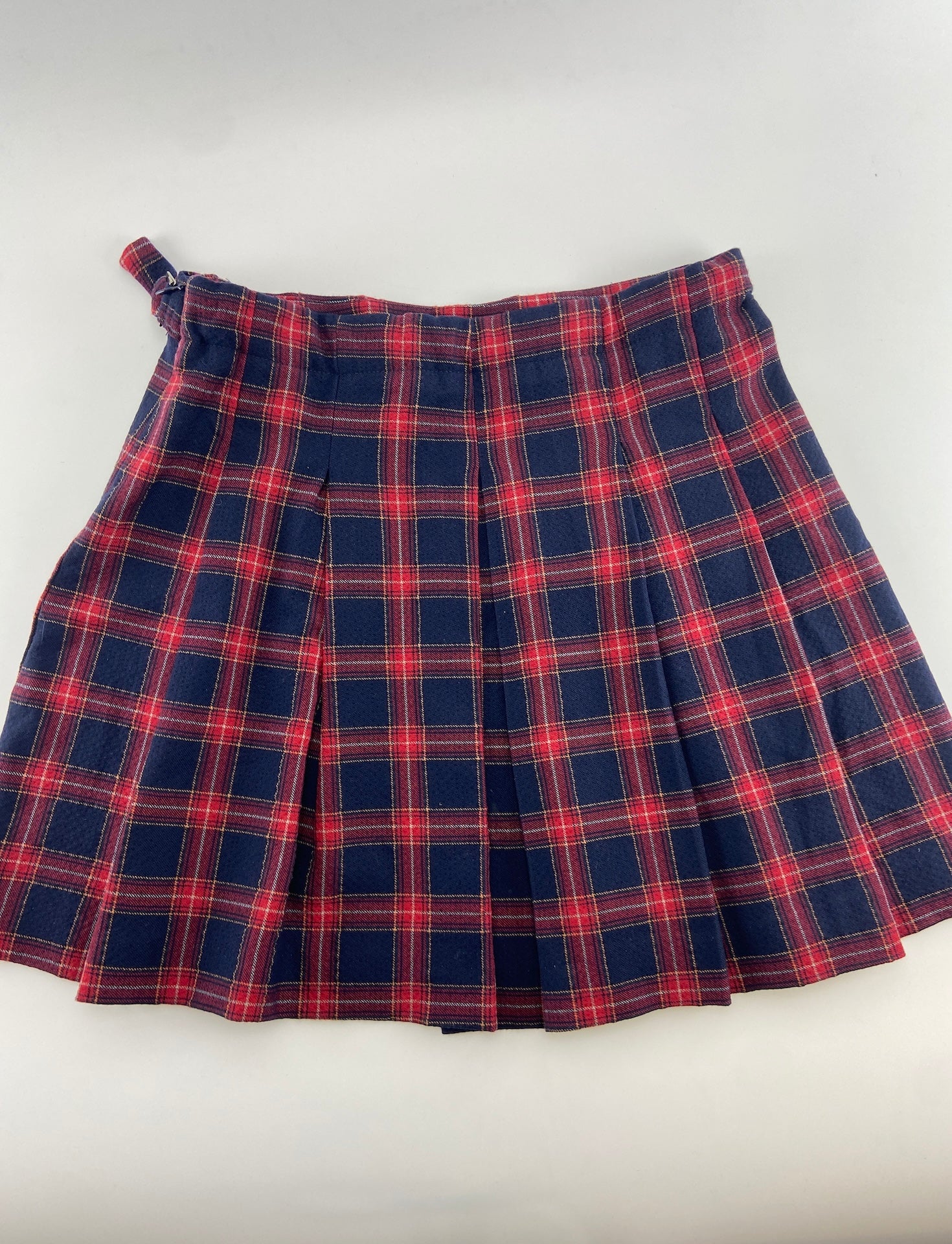 Saia com pregas tipo kilt em vaiela com padrão escocês.