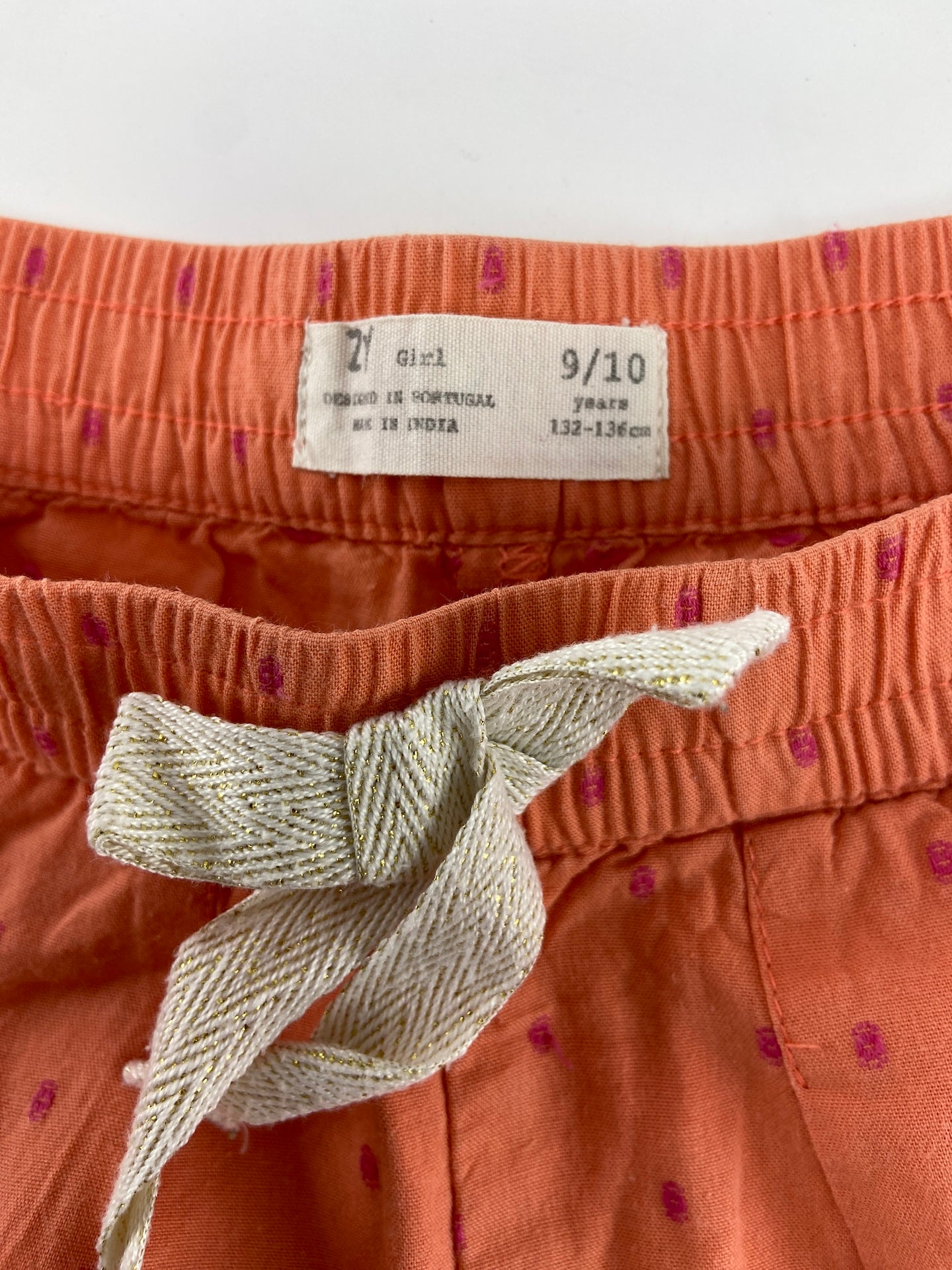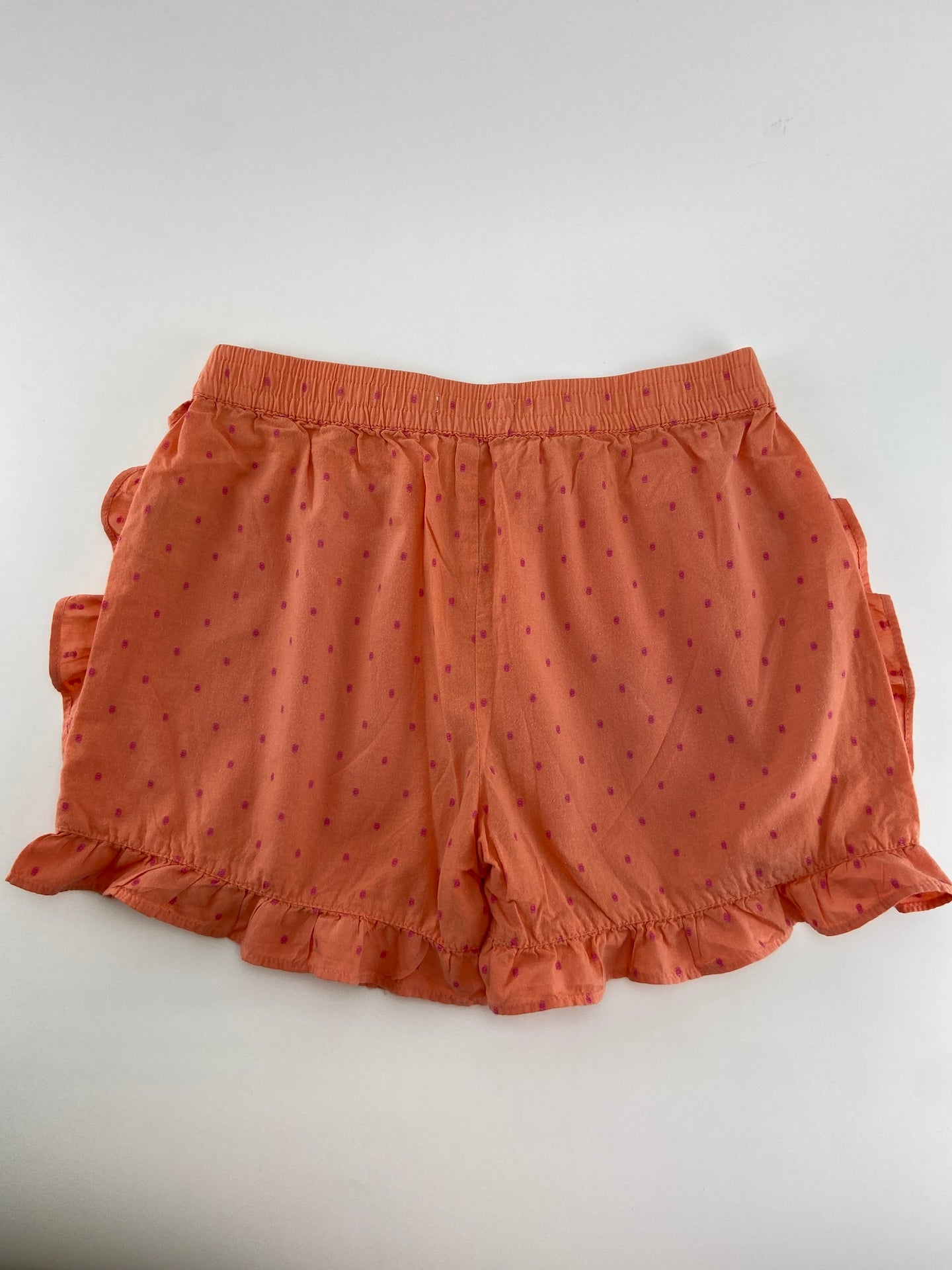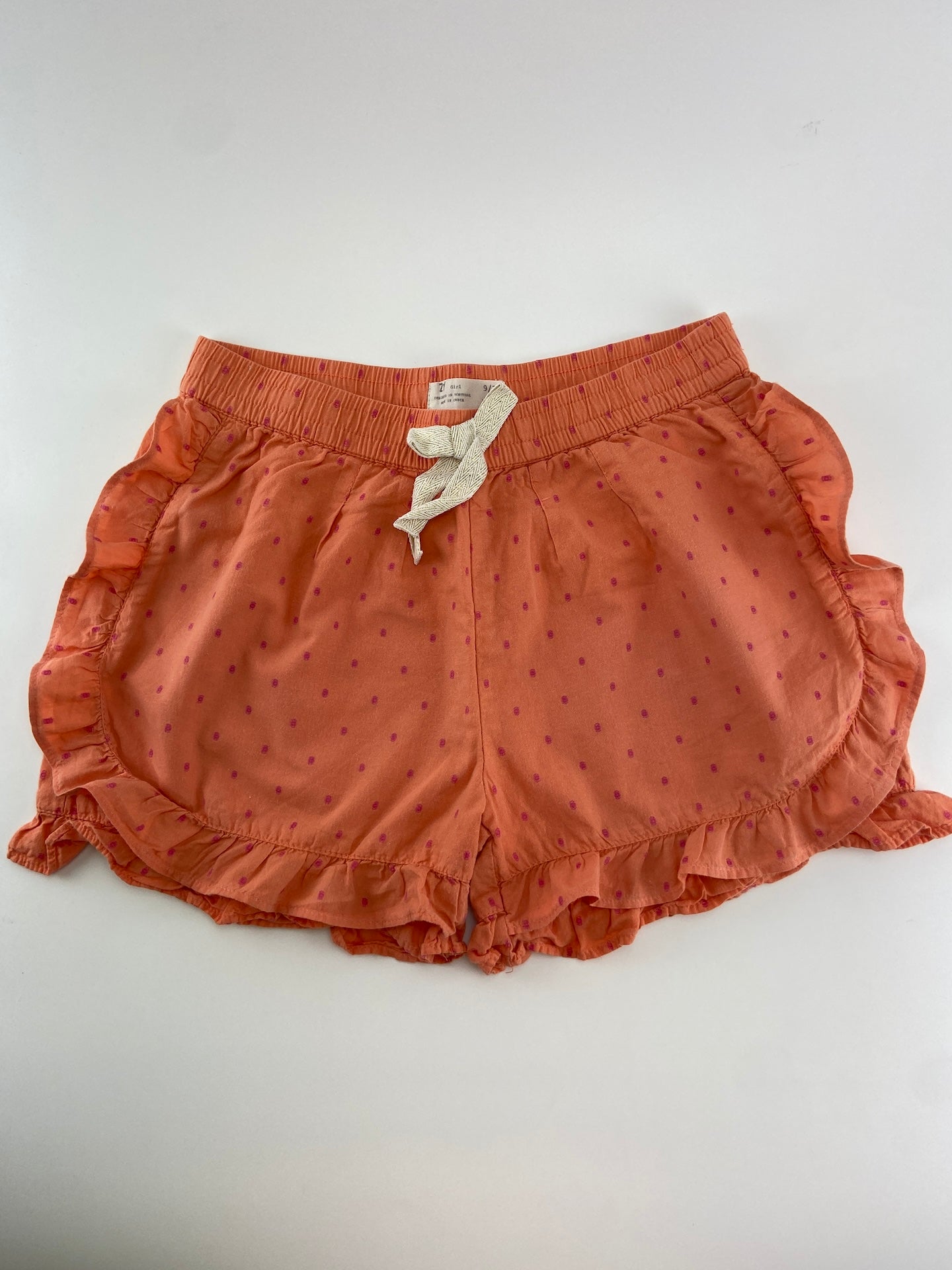 Calções em tecido tipo caça com folho.